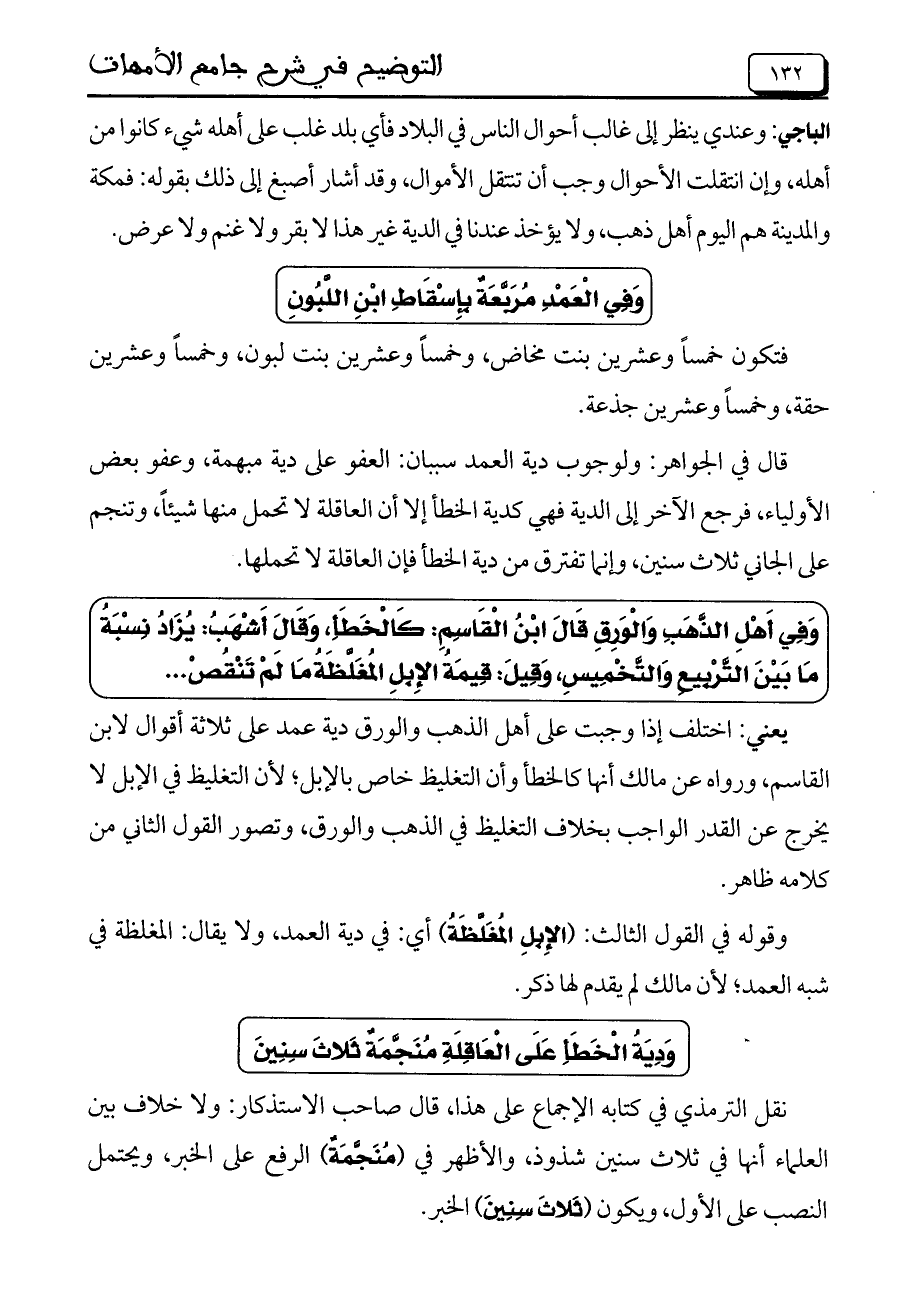 الباجي: وعندي ينظر إلى غالب أحوال النسا في البلاد فأي بلد غلب على أهله شيء كانوا من أهله، وإن انتقلت الأحوال وجب أن تنتقل الأموال، وقد أشار أصبغ إلى ذلك بقوله: فمكة والمدينة هم اليوم أهل ذهب، ولا يؤخذ عندنا في الدية غير هذا لا بقر ولا غنم ولا عرض.