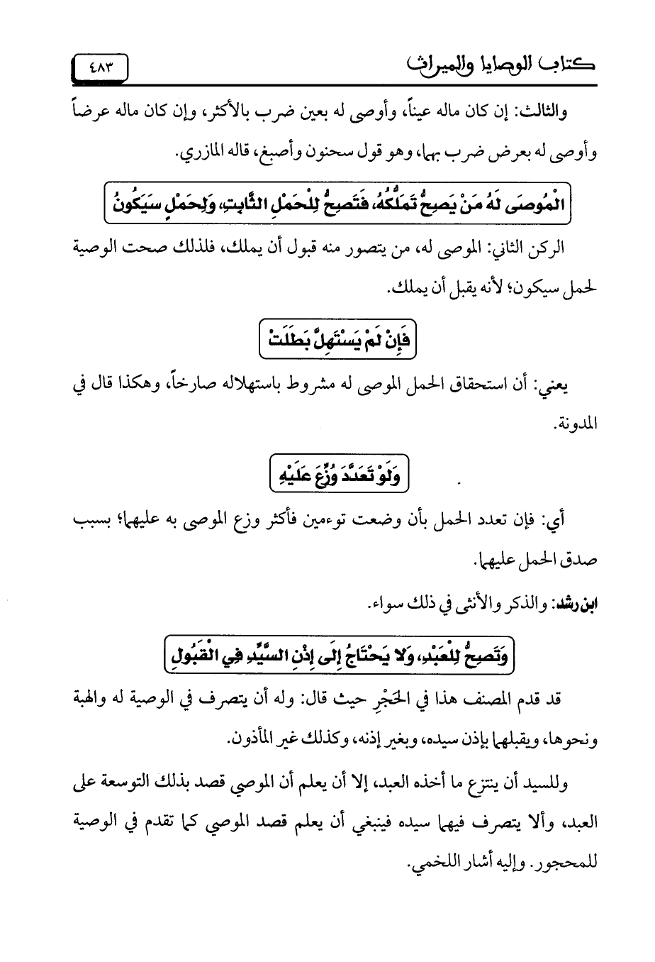 الْمُوصَى لَهُ مَنْ يَصِحُّ تَمَلُّكُهُ، فَتَصِحُّ لِلْحَمْلِ الثَّابِتِ، وَلِحَمْلٍ سَيَكُونُ