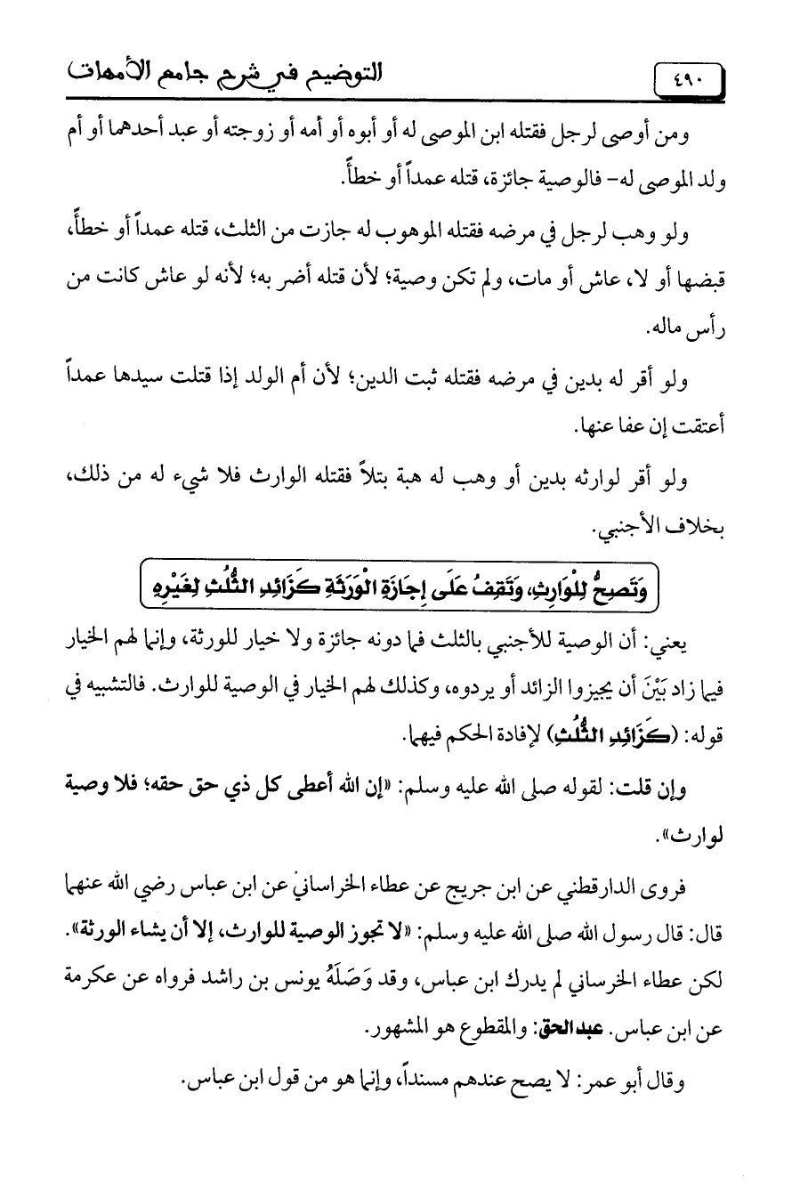 فروى الدارقطني عن ابن جريج عن عطاء الخراساني عن ابن عباس رضي الله عنهما قال: قال رسول الله صلى الله عليه وسلم: "لا تجوز الوصية للوارث، إلا أن يشاء الورثة". لكن عطاء الخرساني لم يدرك ابن عباس، وقد وَصَلَهُ يونس بن راشد فرواه عن عكرمة عن ابن عباس. عبد الحق: والمقطوع هو المشهور.