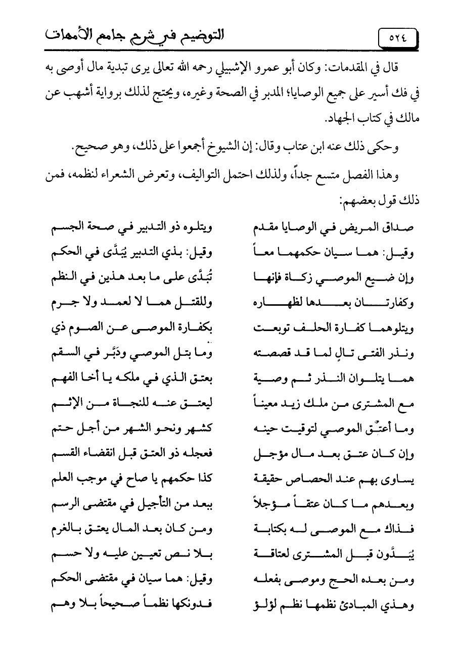 صداق المريض في الوصايا مقدم ... ويتلوه ذو التدبير ي صحة الجسم