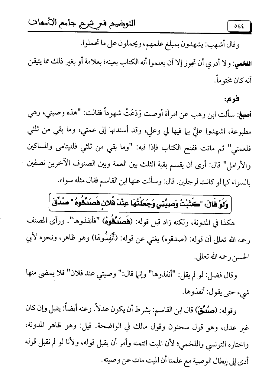 وقال فضل: لو لم يقل: "أنفذوها" وإنما قال: "وصيتي عند فلان" فلا يمضي منها شيء حتى يقول: أنفذوها.