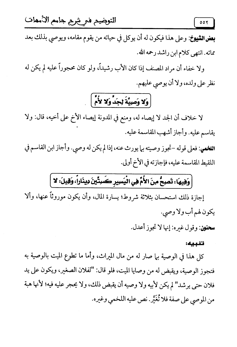 بعض الشيوخ: وعلى هذا فيكون له أن يوكل في حياته من يقوم مقامه، ويوصي بذلك بعد مماته. انتهى كلام ابن راشد رحمه الله.
