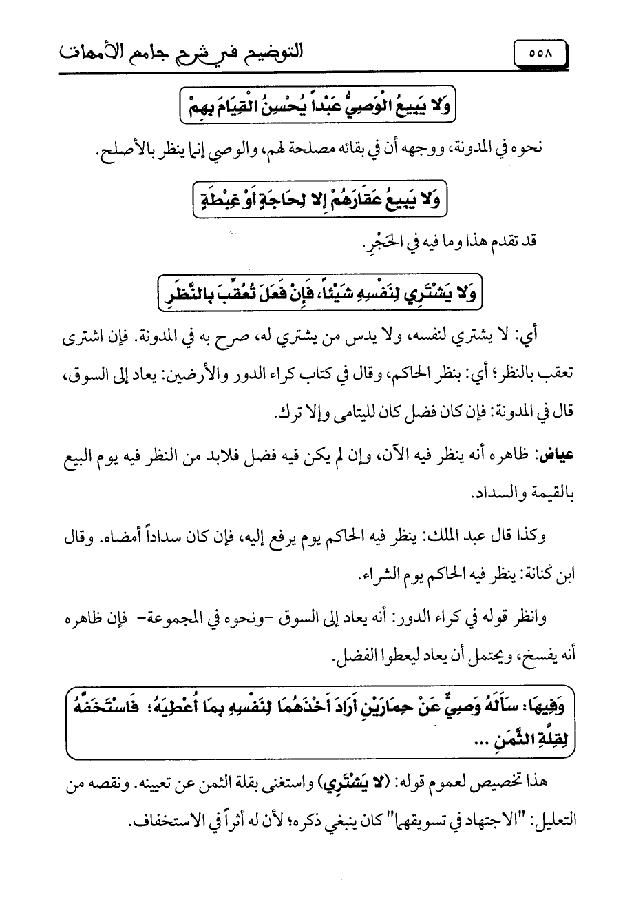 وَلا يَبيعُ عَقَارَهُمْ إِلا لِحَاجَةٍ أَوْ غِبْطَةٍ