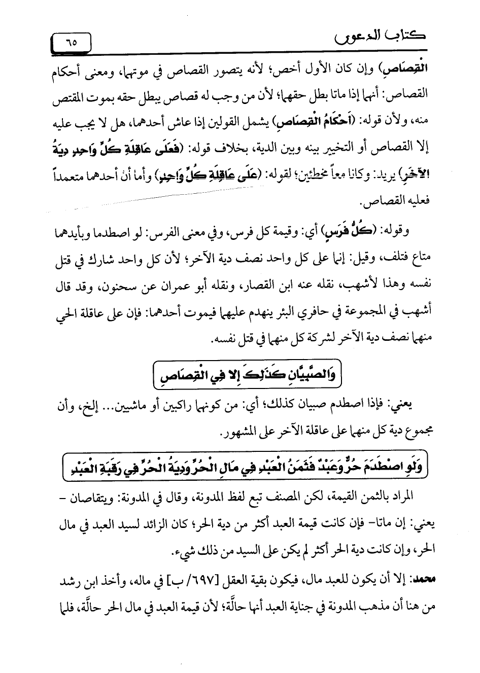 محمد: إلا أن يكون للعبد مال، فيكون بقية العقل [697/ب] في مالهن وأخذ ابن رشد من هنا أن مذهب المدونة في جناية العبد أنها حالَّة؛ لأن قيمة العبد في مال الحر حالَّة، فلما