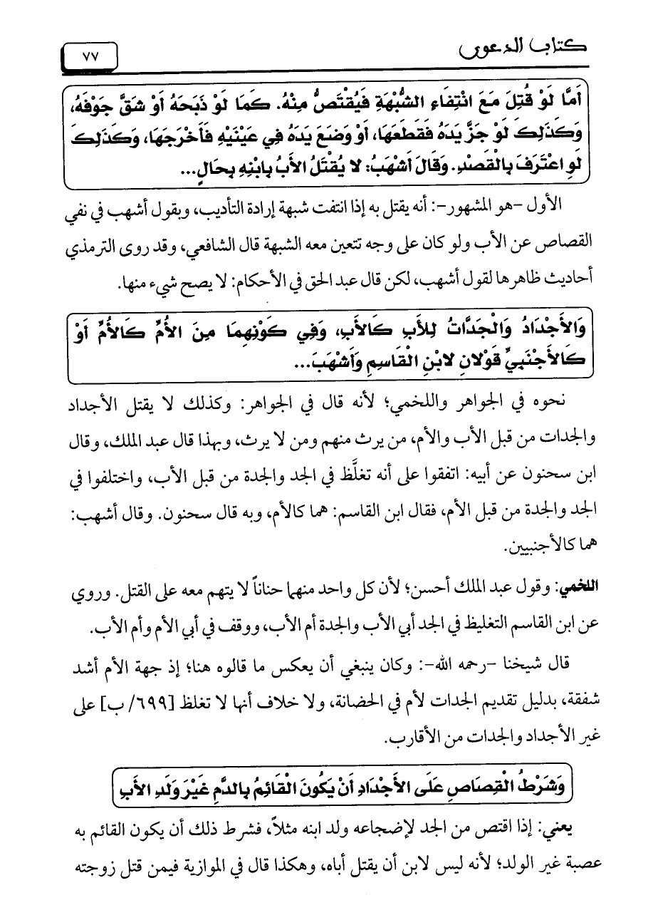 وَشَرْطُ الْقِصَاصِ عَلَى الأَجْدَادِ أَنْ يَكُونَ الْقَائِمُ بالدَّمِ غَيْرَ وَلَدِ الأَبِ