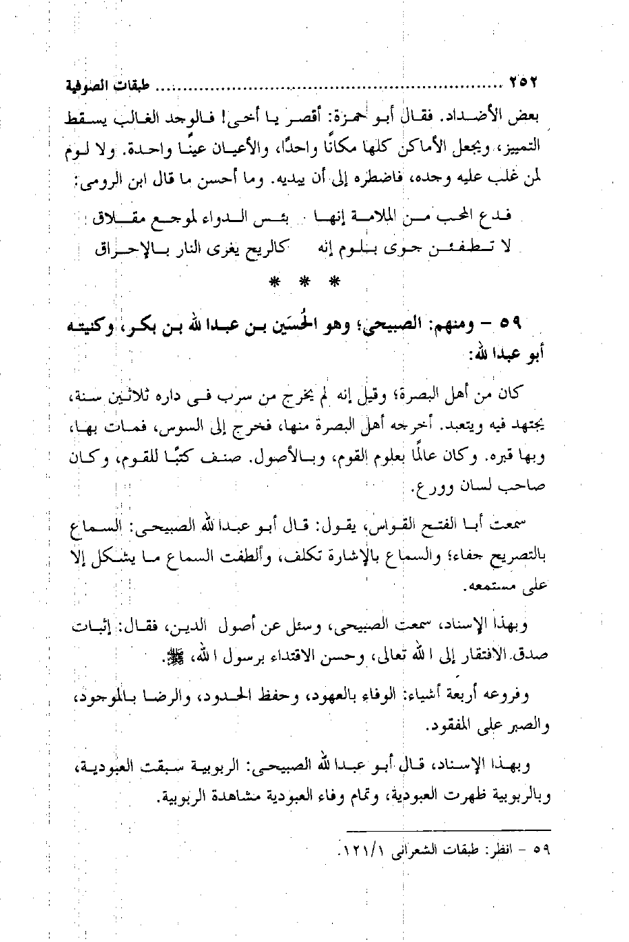 59 - وَمِنْهُم الصبيحي وَهُوَ الْحُسَيْن بن عبد الله بن بكر وكنيته أَبُو عبد الله