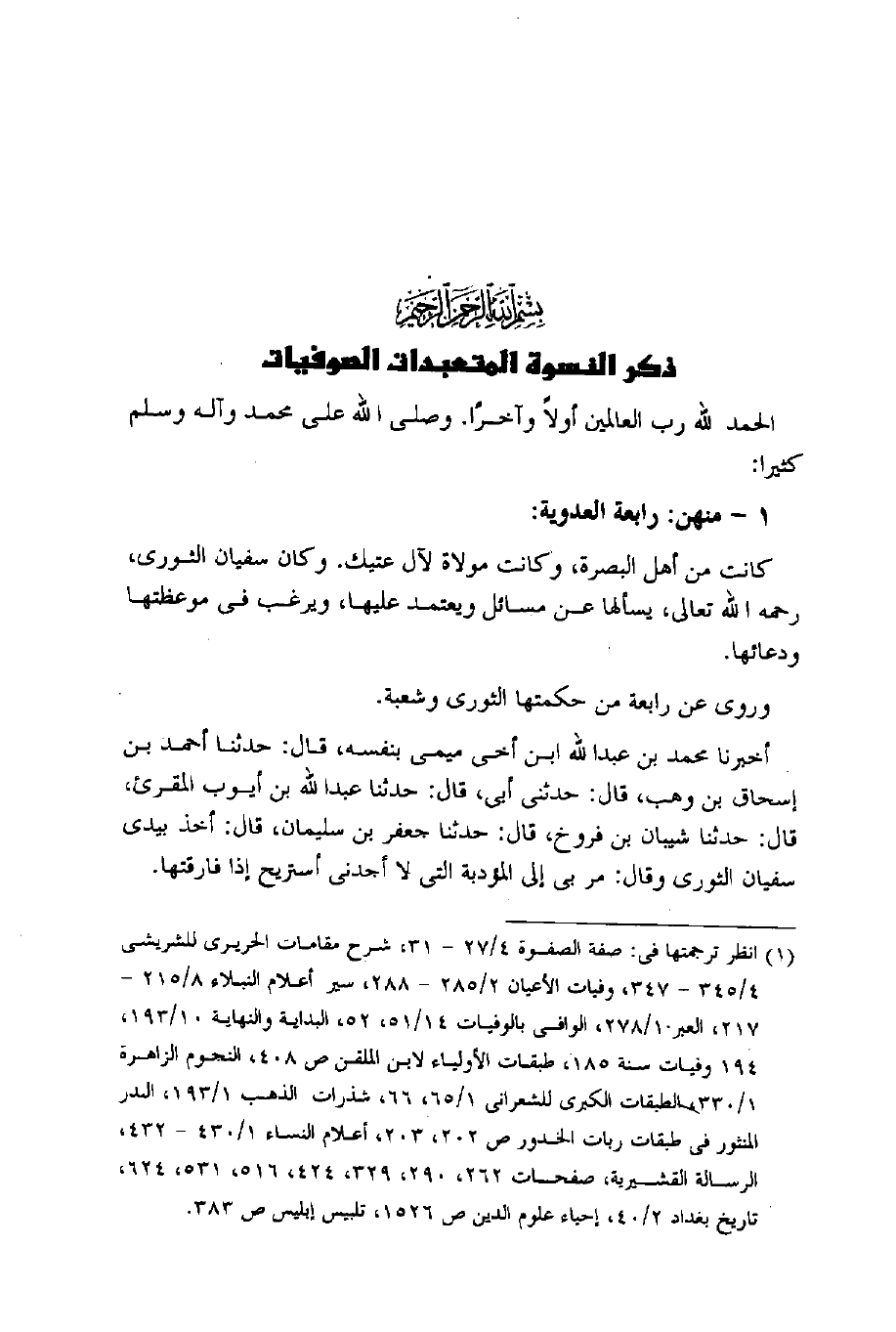 كتاب طبقات الصوفية للسلمي ويليه ذكر النسوة المتعبدات الصوفيات