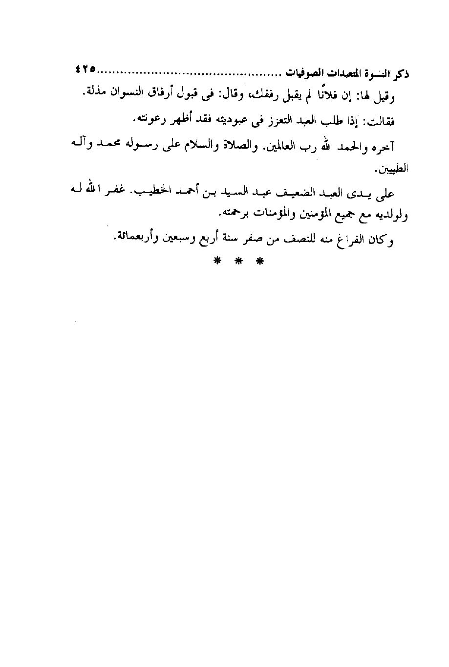 على يَدي العَبْد الضَّعِيف عبد السَّيِّد بن أَحْمد الْخَطِيب غفر الله لَهُ ولولديه مَعَ جَمِيع الْمُؤمنِينَ وَالْمُؤْمِنَات برحمته
