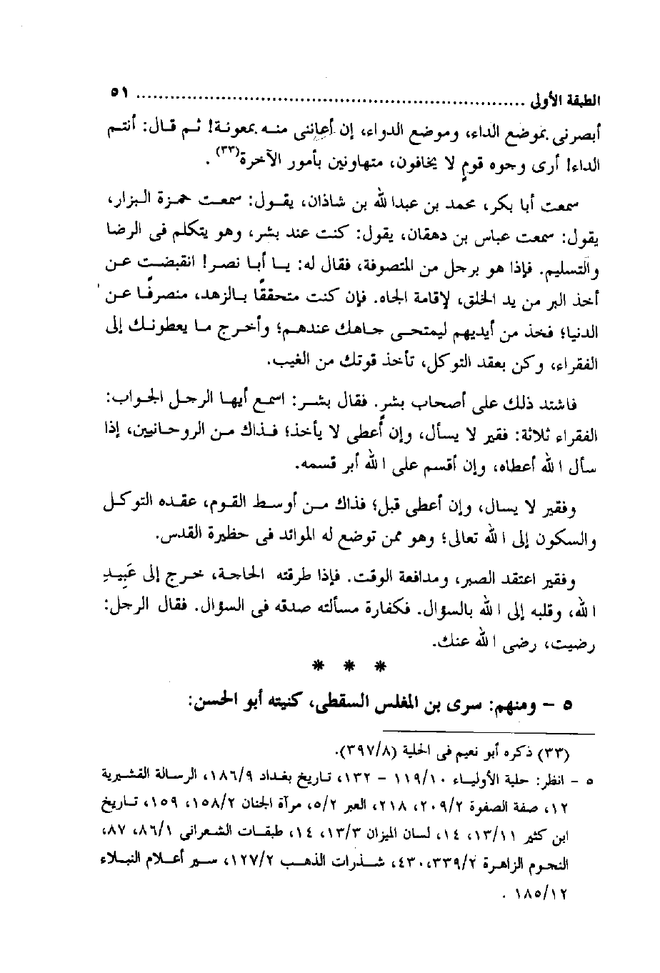 5 - وَمِنْهُم سري بن الْمُغلس السَّقطِي كنيته أَبُو الْحسن