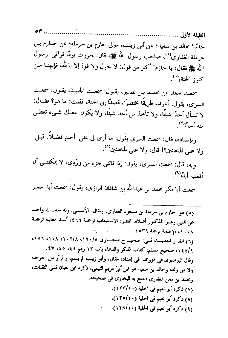 سَمِعت جَعْفَر بن مُحَمَّد بن نصير يَقُول سَمِعت الْجُنَيْد يَقُول سَمِعت السّري يَقُول أعرف طَرِيقا مُخْتَصرا قصدا إِلَى الْجنَّة فَقلت مَا هُوَ فَقَالَ لَا تسْأَل أحدا شَيْئا وَلَا تَأْخُذ من أحد شَيْئا وَلَا يكون مَعَك شَيْء تُعْطِي مِنْهُ أحدا
