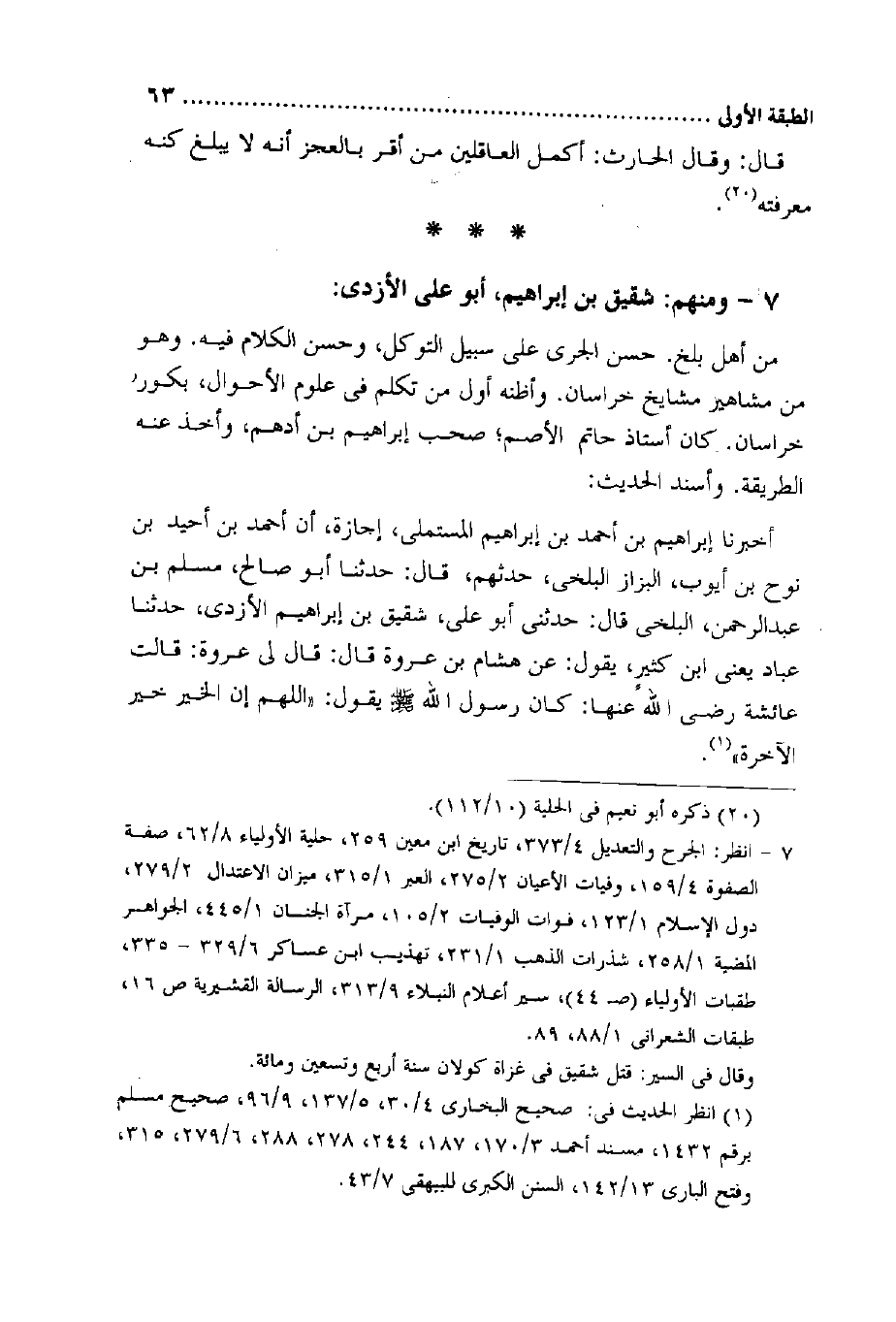 7 - وَمِنْهُم شَقِيق بن إِبْرَاهِيم أَبُو عَليّ الْأَزْدِيّ