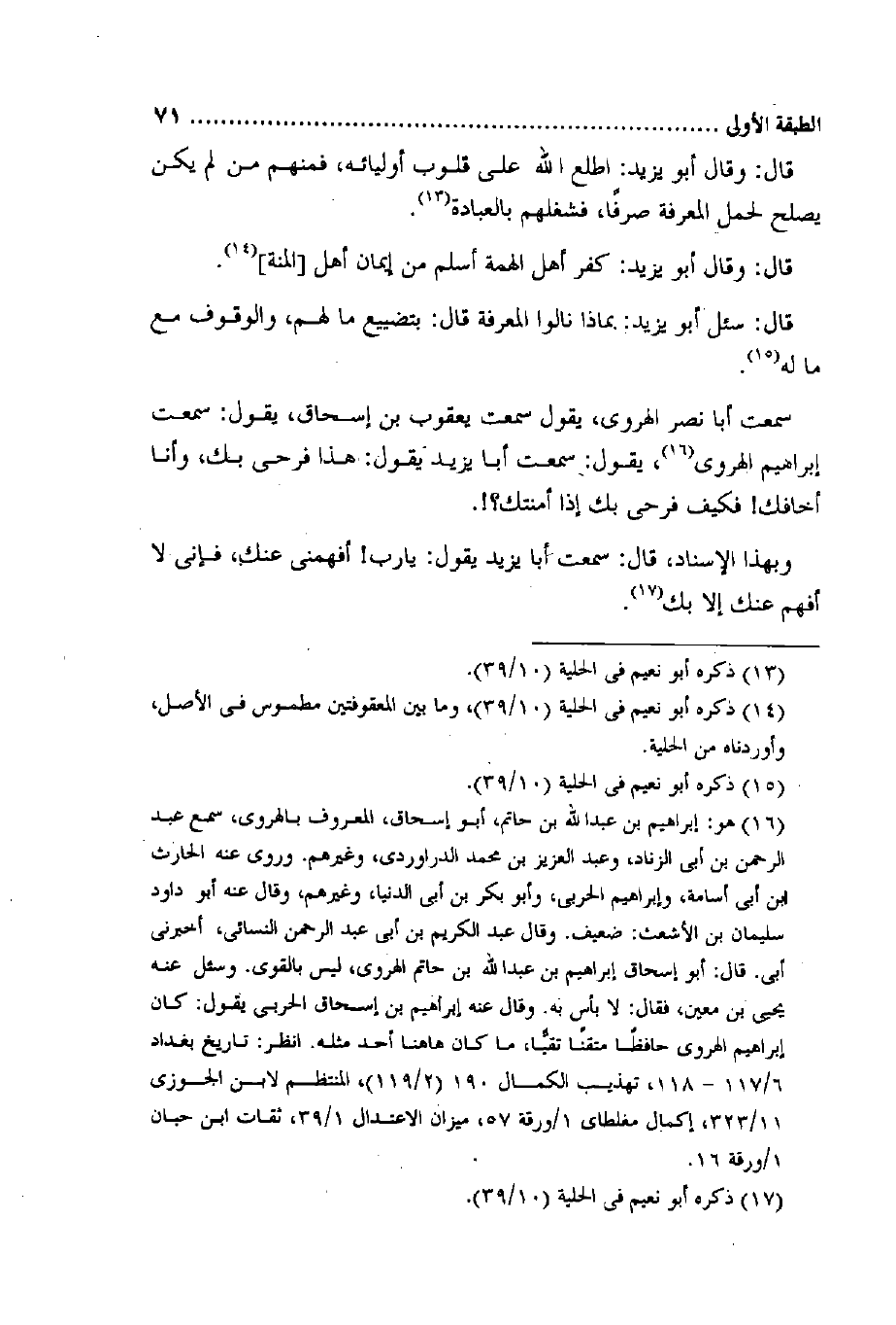 سَمِعت أَبَا نصر الْهَرَوِيّ يَقُول سَمِعت يَعْقُوب بن إِسْحَاق يَقُول سَمِعت إِبْرَاهِيم الْهَرَوِيّ يَقُول سَمِعت أَبَا يزِيد يَقُول هَذَا فرحي بك وَأَنا أخافك فَكيف فرحي بك إِذا أمنتك