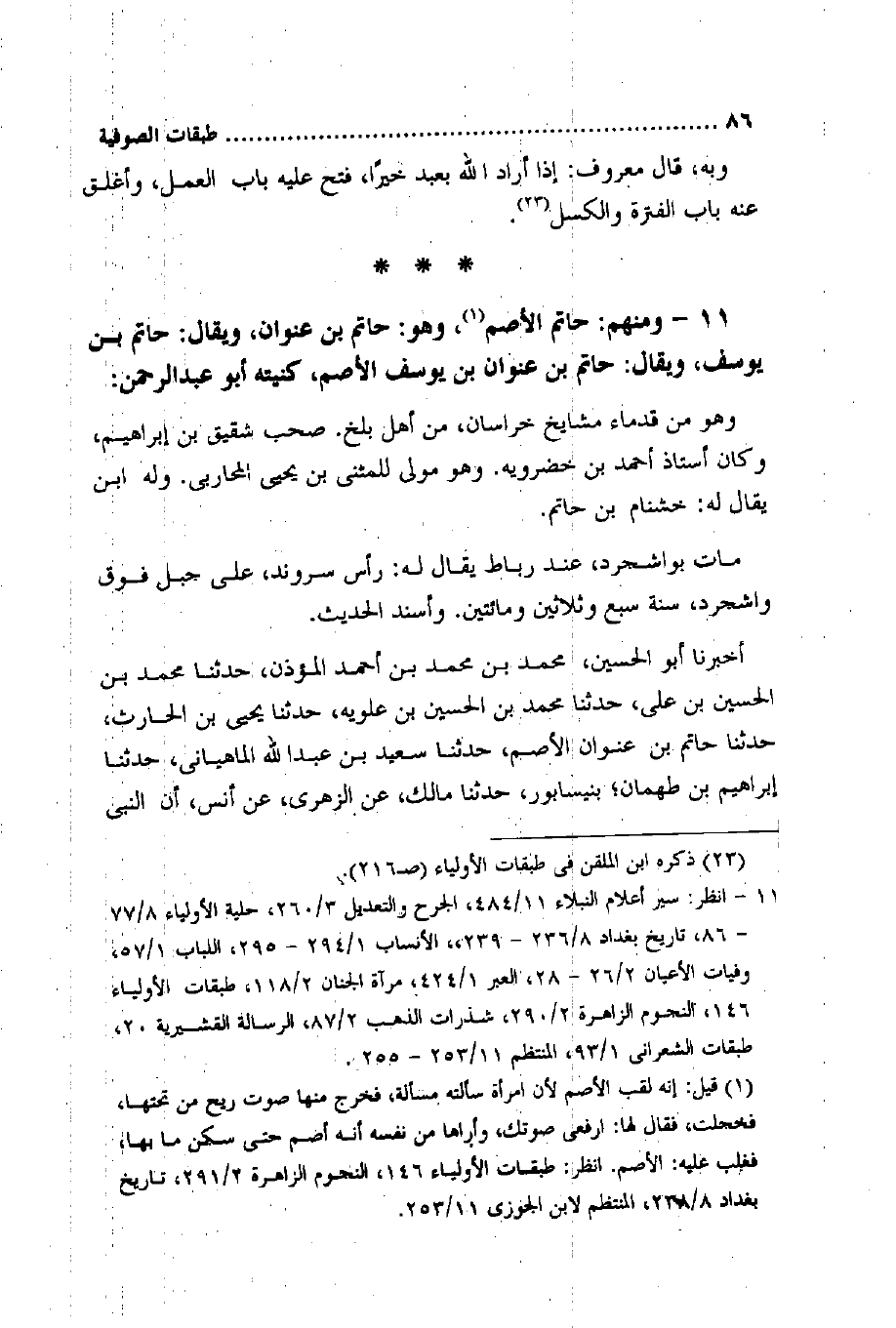 11 - وَمِنْهُم حَاتِم الْأَصَم وَهُوَ حَاتِم بن عنوان وَيُقَال حَاتِم بن يُوسُف وَيُقَال حَاتِم بن عنوان بن يُوسُف الْأَصَم كنيته أَبُو عبد الرَّحْمَن