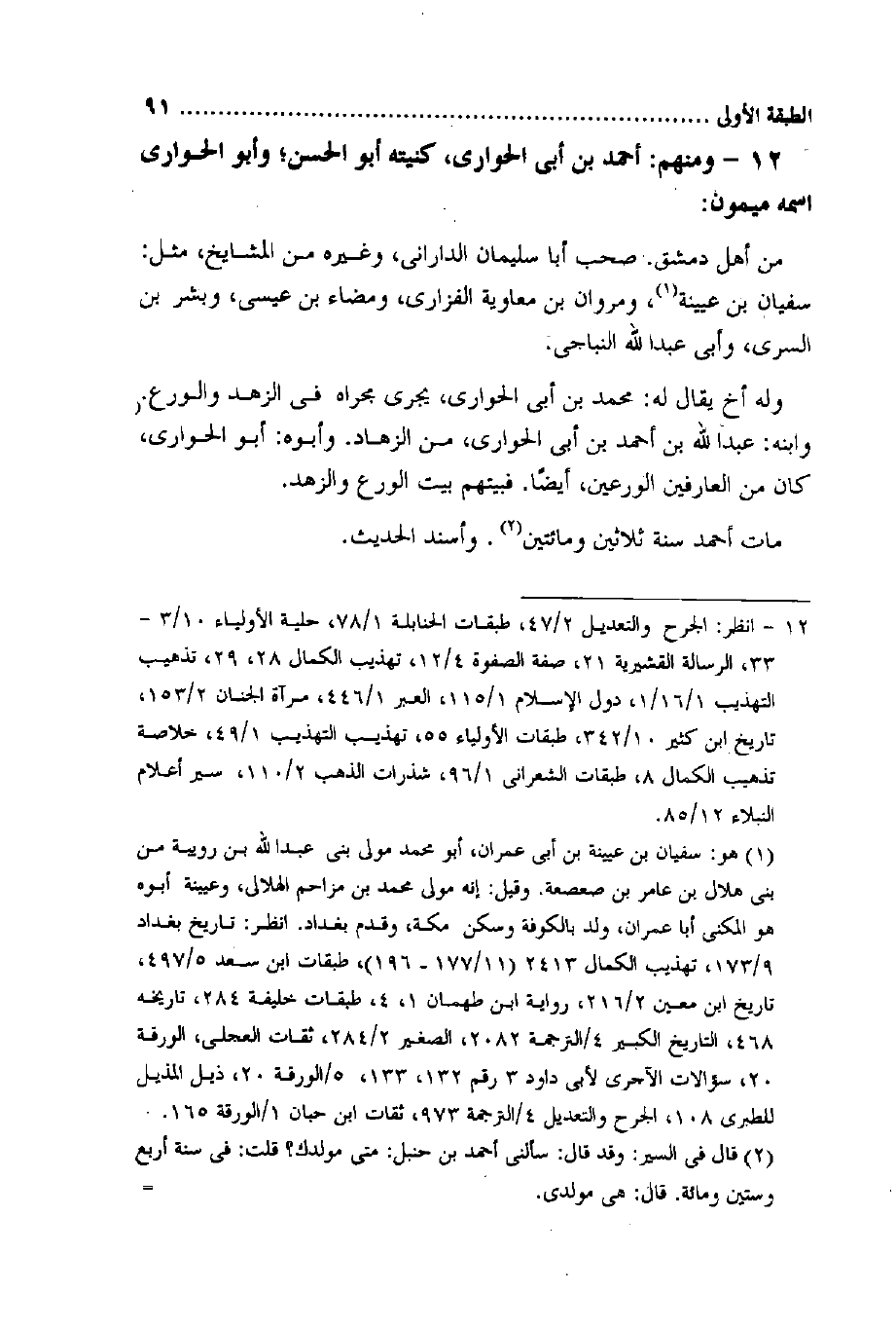 12 - وَمِنْهُم أَحْمد بن أبي الْحوَاري كنيته أَبُو الْحسن وَأَبُو الْحوَاري اسْمه مَيْمُون