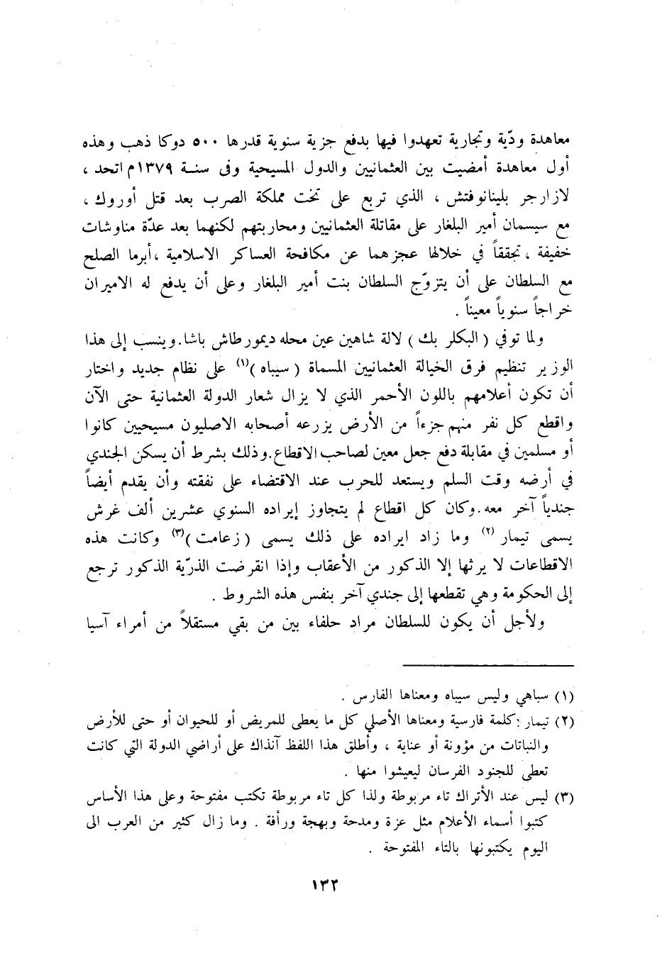 وَلما توفّي البكلر بك لالة شاهين عين مَحَله ديمورطاش باشا وينسب إِلَى هَذَا الْوَزير تنظيم فرق الخيالة العثمانيين الْمُسَمَّاة سيباه على نظام جَدِيد وَاخْتَارَ ان تكون اعلامهم باللون الاحمر الَّذِي لَا يزَال شعار الدولة العثمانية حَتَّى الْآن واقطع كل نفر مِنْهُم جُزْءا من الارض يزرعه اصحابه الاصليون مسيحيين كَانُوا اَوْ مُسلمين فِي مُقَابلَة دفع جعل معِين لصَاحب الاقطاع وَذَلِكَ بِشَرْط ان يسكن الجندي فِي ارضه وَقت السّلم ويستعد للحرب عِنْد الِاقْتِضَاء على نَفَقَته وان يقدم ايضا جنديا آخر مَعَه وَكَانَ كل اقطاع لم يتَجَاوَز ايراده اسنوي عشْرين الف غرش يُسمى تيمار وَمَا زَاد ايراده على ذَلِك يُسمى زعامت وَكَانَت هَذِه الاقطاعات لَا يَرِثهَا الا الذُّكُور من الاعقاب وَإِذا انقرضت الذُّرِّيَّة الذُّكُور ترجع إِلَى الْحُكُومَة وَهِي تقطعها إِلَى جندي آخر بِنَفس هَذِه الشُّرُوط