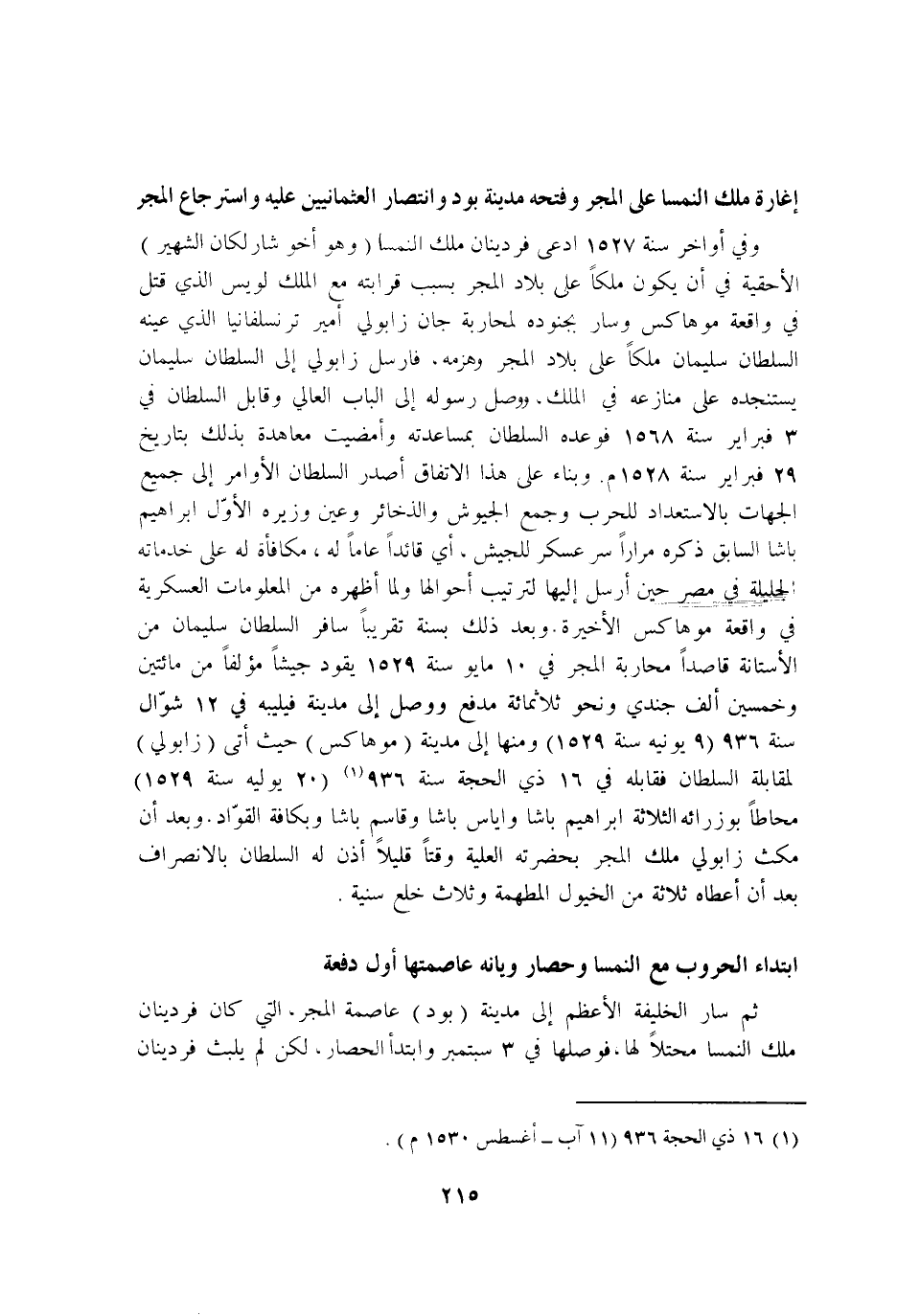 وَفِي اواخر سنة 1527 ادّعى فردينان ملك النمسا وَهُوَ اخو شارلكان الشهير الاحقية فِي ان يكون ملكا على بِلَاد المجر بِسَبَب قرَابَته مَعَ الْملك لويس الَّذِي قتل فِي وَاقعَة موهاكس وَسَار بجُنُوده لمحاربة جَان زابولي امير ترنسلفانيا الَّذِي عينه السُّلْطَان سُلَيْمَان ملكا على بِلَاد المجر وهزمه فارسل زابولي إِلَى السُّلْطَان سُلَيْمَان يستنجده على منازعه فِي الْملك وَوصل رَسُوله إِلَى الْبَاب العالي وقابل السُّلْطَان فِي 3 فبراير سنة 1568 فوعده السُّلْطَان بمساعدته وامضيت معاهدة بذلك بتاريخ 29 فبراير سنة 1528 وَبِنَاء على هَذَا الِاتِّفَاق اصدر السُّلْطَان الاوامر إِلَى جَمِيع الْجِهَات بالاستعداد للحرب وَجمع الجيوش والذخائر وَعين وزيره الاول ابراهيم باشا السَّابِق ذكره مرَارًا سر عَسْكَر للجيش أَي قائدا عَاما لَهُ مُكَافَأَة لَهُ على خدماته الجليلة فِي مصر حِين ارسل اليها لترتيب احوالها وَلما اظهره من المعلومات العسكرية فِي وَاقعَة موهاكس الاخيرة وَبعد ذَلِك بِسنة تَقْرِيبًا سَافر السُّلْطَان سُلَيْمَان من الاستانة قَاصِدا محاربة المجر فِي 10 مايو سنة 1529 يَقُود جَيْشًا مؤلفا من مِائَتَيْنِ وَخمسين الف جندي وَنَحْو ثَلَاثمِائَة مدفع وَوصل إِلَى مَدِينَة فيليبه فِي 12 شَوَّال سنة 936 9 يونيه سنة 1529 وَمِنْهَا إِلَى مَدِينَة موهاكس حَيْثُ اتى زابولي لمقابلة السُّلْطَان فقابله فِي 16 ذِي الْحجَّة سنة 936 20 يوليه سنة 1529 محاطا بوزرائه الثَّلَاثَة ابراهيم باشا واياس باشا وقاسم باشا وبكافة القواد وَبعد ان مكث زابولي ملك المجر بِحَضْرَتِهِ الْعلية وقتا قَلِيلا اذن لَهُ السُّلْطَان بالانصراف بعد ان اعطاه ثَلَاثَة من الْخُيُول المطهمة وَثَلَاث خلع سنية