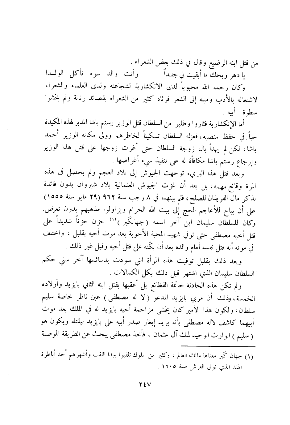 وَبعد ذَلِك يقليل توفيت هَذِه الْمَرْأَة الَّتِي سودت بدسائسها آخر سني حكم السُّلْطَان سُلَيْمَان الَّذِي اشْتهر قبل ذَلِك بِكُل الكمالات