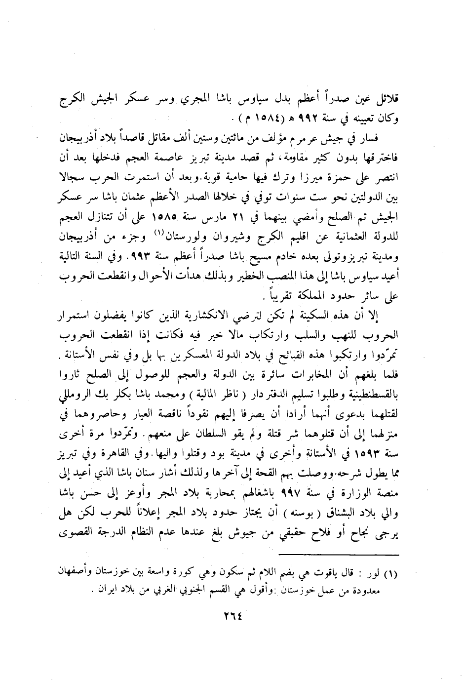 فَسَار فِي جَيش عَرَمْرَم مؤلف من مِائَتَيْنِ وَسِتِّينَ الف مقَاتل قَاصِدا بِلَاد اذربيجان فاخترقها بِدُونِ كثير مقاومة ثمَّ قصد مَدِينَة تبريز عَاصِمَة الْعَجم فَدَخلَهَا بعد ان انتصر على حَمْزَة ميرزا وَترك فِيهَا حامية قَوِيَّة وَبعد ان استمرت الْحَرْب سجالا بَين الدولتين نَحْو سِتّ سنوات توفّي فِي خلالها الصَّدْر الاعظم عُثْمَان باشا سر عَسْكَر الْجَيْش تمّ الصُّلْح وامضي بَينهمَا فِي 21 مارس سنة 1585 على ان تتنازل الْعَجم للدولة العثمانية عَن اقليم الكرج وشيروان ولورستان وجزء من اذربيجان ومدينة تبريز وَتَوَلَّى بعده خَادِم مسيح باشا صَدرا اعظم سنة 993 وَفِي السّنة التالية اعيد سياوس باشا إِلَى هَذَا المنصب الخطير وَبِذَلِك هدأت الاحوال وانقطعت الحروب على سَائِر حُدُود المملكة تَقْرِيبًا