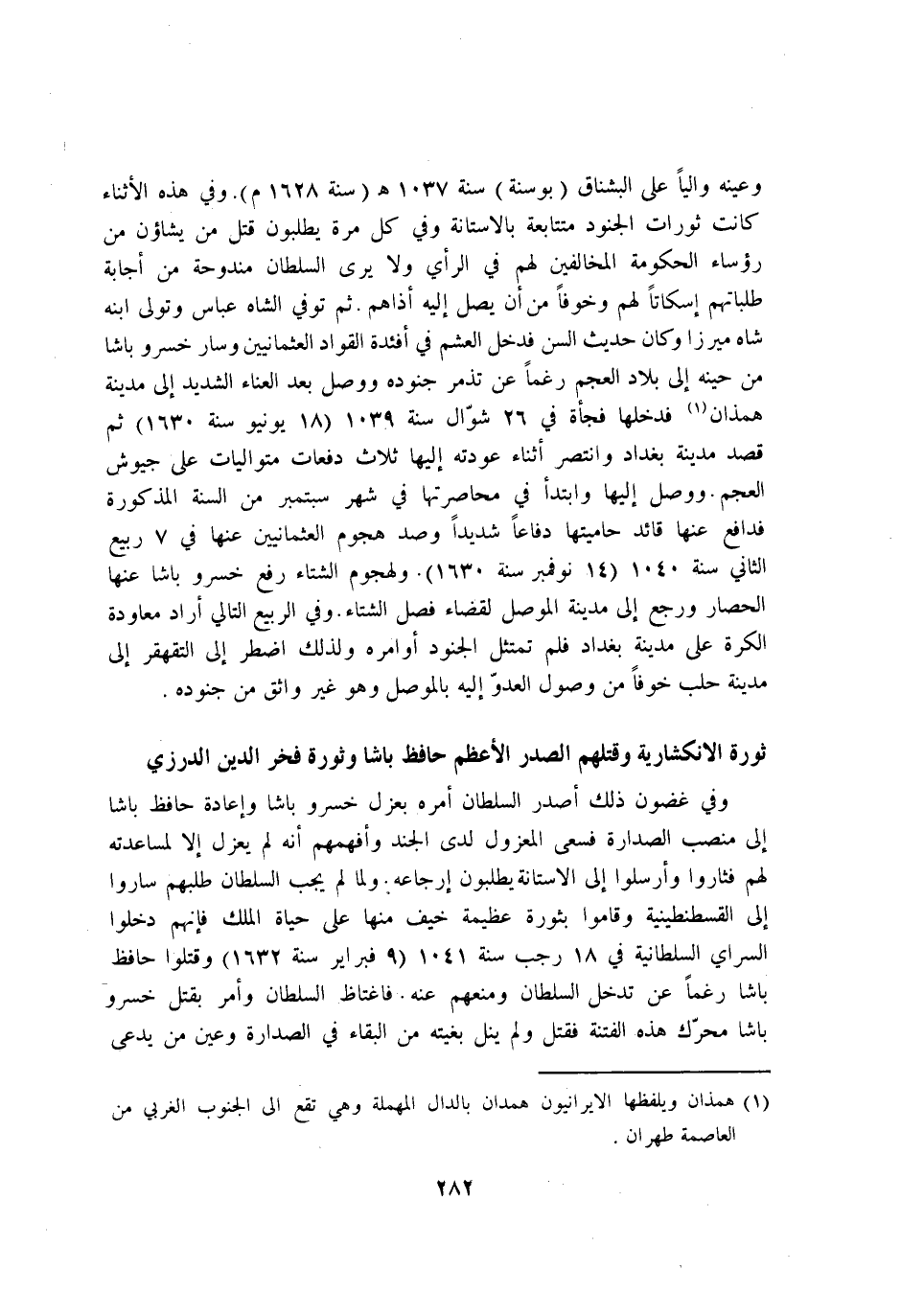 ثورة الانكشارية وقتلهم الصَّدْر الاعظم حَافظ باشا وثورة فَخر الدّين الدرزي