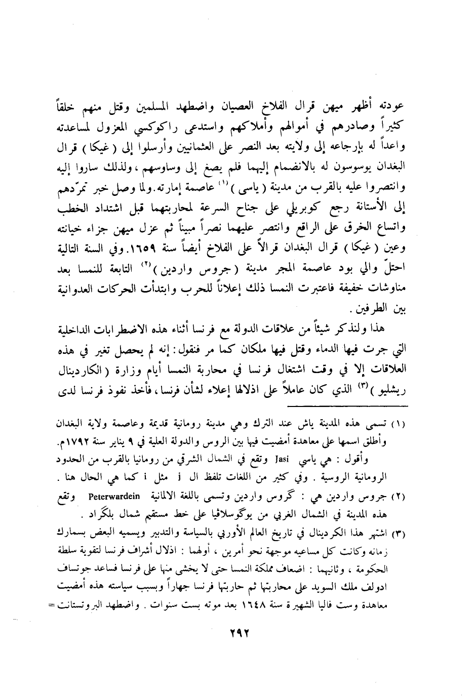 هَذَا ولنذكر شَيْئا من علاقات الدولة مَعَ فرنسا اثناء هَذِه الاضطرابات الداخلية الَّتِي جرت فِيهَا الدِّمَاء وَقتل فِيهَا ملكان كَمَا مر فَنَقُول انه لم يحصل تغير فِي هَذِه العلاقات الا فِي وَقت اشْتِغَال فرنسا فِي محاربة النمسا ايام وزارة الكاردينال ريشليو الَّذِي كَانَ عَاملا على اذلالها اعلاء لشأن فرنسا فاخذ نُفُوذ فرنسا لَدَى