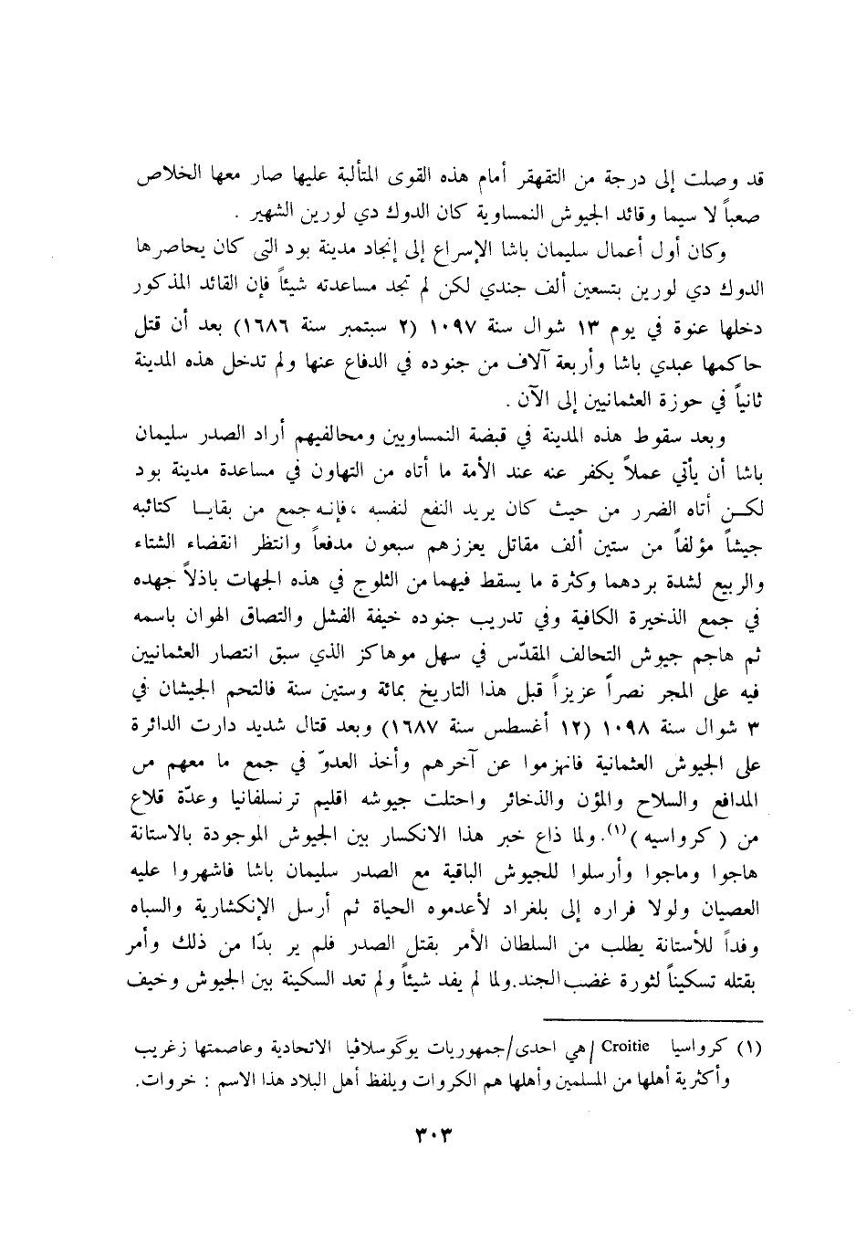 وَكَانَ اول اعمال سُلَيْمَان باشا الاسراع إِلَى انجاد مَدِينَة بود الَّتِي كَانَ يحاصرها الدوك دي لورين بتسعين الف جندي لَكِن لم تَجِد مساعدته شَيْئا فان الْقَائِد الْمَذْكُور دَخلهَا عنْوَة فِي يَوْم 13 شَوَّال سنة 1097 2 سبتمبر سنة 1686 بعد ان قتل حاكمها عَبدِي باشا واربعة آلَاف من جُنُوده فِي الدفاع عَنْهَا وَلم تدخل هَذِه الْمَدِينَة ثَانِيًا فِي حوزة العثمانيين إِلَى الْآن