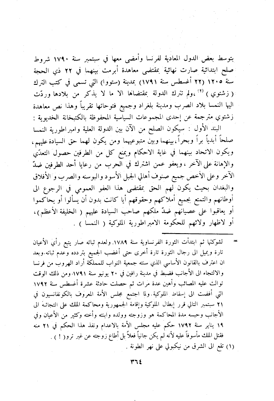 بتوسط بعض الدول المعادية لفرنسا وامضى مَعهَا فِي سبتمبر سنة 1790 م شُرُوط صلح ابتدائية صَارَت نهائية بِمُقْتَضى معاهدة ابرمت بَينهمَا فِي 22 ذِي الْحجَّة سنة 1205 هـ 22 اغسطس سنة 1791 م بِمَدِينَة ستووا الَّتِي تسمى فِي كتب التّرْك زشتوي وَلم تتْرك الدولة بمقتضاها الا مَا لَا يذكر من بلادها وَردت اليها النمسا بِلَاد الصرب ومدينة بلغراد وَجَمِيع فتوحاتها تَقْرِيبًا وَهَذَا نَص معاهدة زشتوي مترجمة عَن احدى المجموعات السياسية المحفوظة بالكتبخانة الخديوية