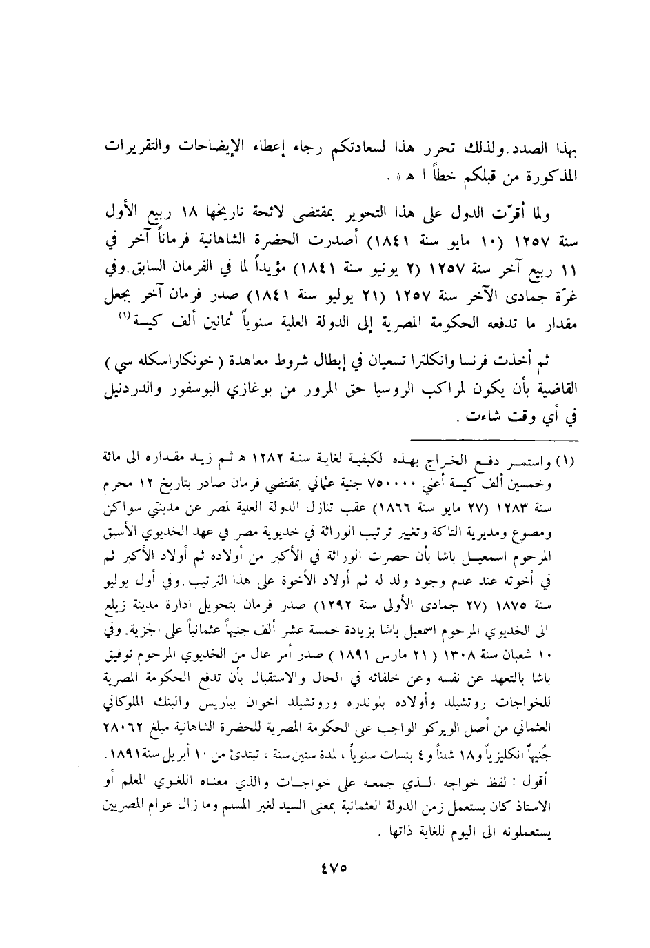 وَلما اقرت الدول على هَذَا التحوير بِمُقْتَضى لائحة تاريخها 18 ربيع الاول سنة 1257 10 مايو سنة 1841 اصدرت الحضرة الشاهانية فرمانا آخر فِي 11 ربيع آخر سنة 1257 2 يونيو سنة 1841 مؤيدا لما فِي الفرمان السَّابِق وَفِي غرَّة جُمَادَى الآخر سنة 1257 21 يوليو سنة 1841 صدر فرمان آخر يَجْعَل مِقْدَار مَا تَدْفَعهُ الْحُكُومَة المصرية إِلَى الدولة الْعلية سنويا ثَمَانِينَ الف كيسة