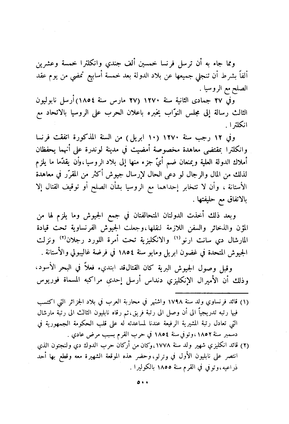 وَفِي 27 جُمَادَى الثَّانِيَة سنة 1270 27 مارس سنة 1854 ارسل نابليون الثَّالِث رِسَالَة إِلَى مجْلِس النواب يُخبرهُ باعلان الْحَرْب على الروسيا بالاتحاد مَعَ انكلترا