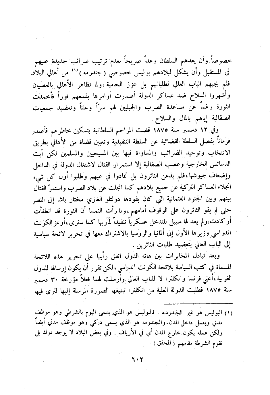 وَفِي 12 دسمبر سنة 1875 قَضَت المراحم السُّلْطَانِيَّة بتسكين خاطرهم فاصدر فرمانا بفصل السلطة القضائية عَن السلطة التنفيذية وَتَعْيِين قُضَاة من الاهالي بطرِيق الانتخاب وتوحيد الضرائب والمساواة فِيهَا بَين المسيحيين وَالْمُسْلِمين لَكِن ابت الدسائس الخارجية وَعصب الصقالبة الا اسْتِمْرَار الْقِتَال لاشتغال الدولة فِي الدَّاخِل واضعاف جيوشها فَلم يذعن الثائرون بل تَمَادَوْا فِي غيهم وطلبوا اول كل شَيْء انجلاء العساكر التركية عَن جَمِيع بِلَادهمْ كَمَا انجلت عَن بِلَاد الصرب وَاسْتمرّ الْقِتَال بَينهم وَبَين الْجنُود العثمانية الَّتِي كَانَ يَقُودهَا دولتلو الْغَازِي مُخْتَار باشا إِلَى النَّصْر حَتَّى لم يقو الثائرون على الْوُقُوف امامهم وَلما رات النمسا ان الثورة قد انطفأت اَوْ كَادَت وَلم يعد لَهَا سَبِيل للتدخل عسكريا تنفيذا لمآربها كَمَا سترى اوعز الكونت اندراسي وزيرها الاول إِلَى المانيا والروسيا بالاشتراك مَعهَا فِي تَحْرِير لائحة سياسية إِلَى الْبَاب العالي بتعضيد طلبات الثائرين