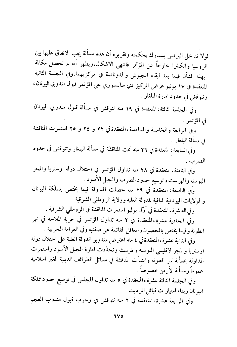 وَفِي التَّاسِعَة المنعقدة فِي 29 مِنْهُ حصلت المداولة فِيمَا يخْتَص بمملكة اليونان والولايات اليونانية الْبَاقِيَة للدولة الْعلية وَولَايَة الرومللي الشرقية