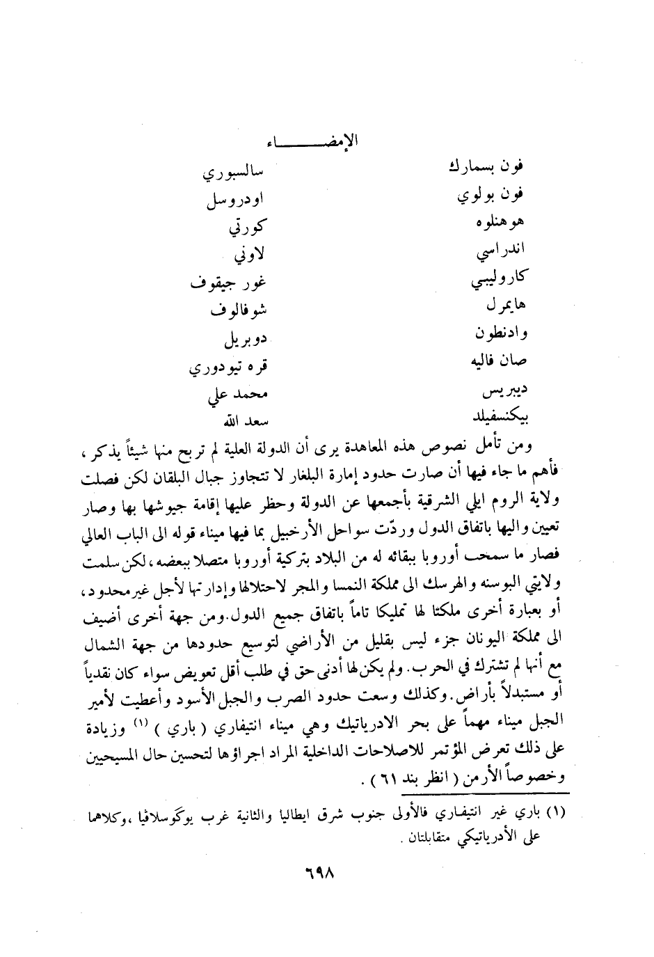 تحريرا فِي برلين فِي يَوْم الثَّالِث عشر من شهر جوليه تموز من سنة 1878 الامضاء فون بسمارك سالسبوري فون بولوي اودروسل هوهنلوه كورتي اندراسي لاوني كاروليبي غورجيقوف هايمرل شوفالوف وادنطون دوبريل صان فاليه قره تيودوري ديبريس مُحَمَّد عَليّ بيكنسفيلد سعد الله