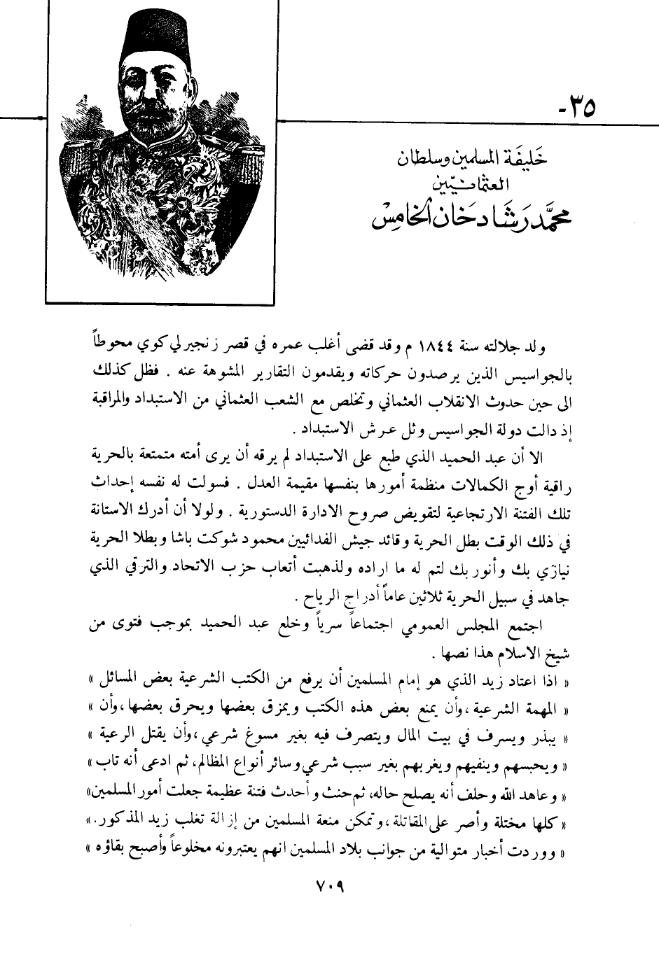 - خَليفَة الْمُسلمين وسلطان العثمانيين مُحَمَّد رشاد خَان الْخَامِس