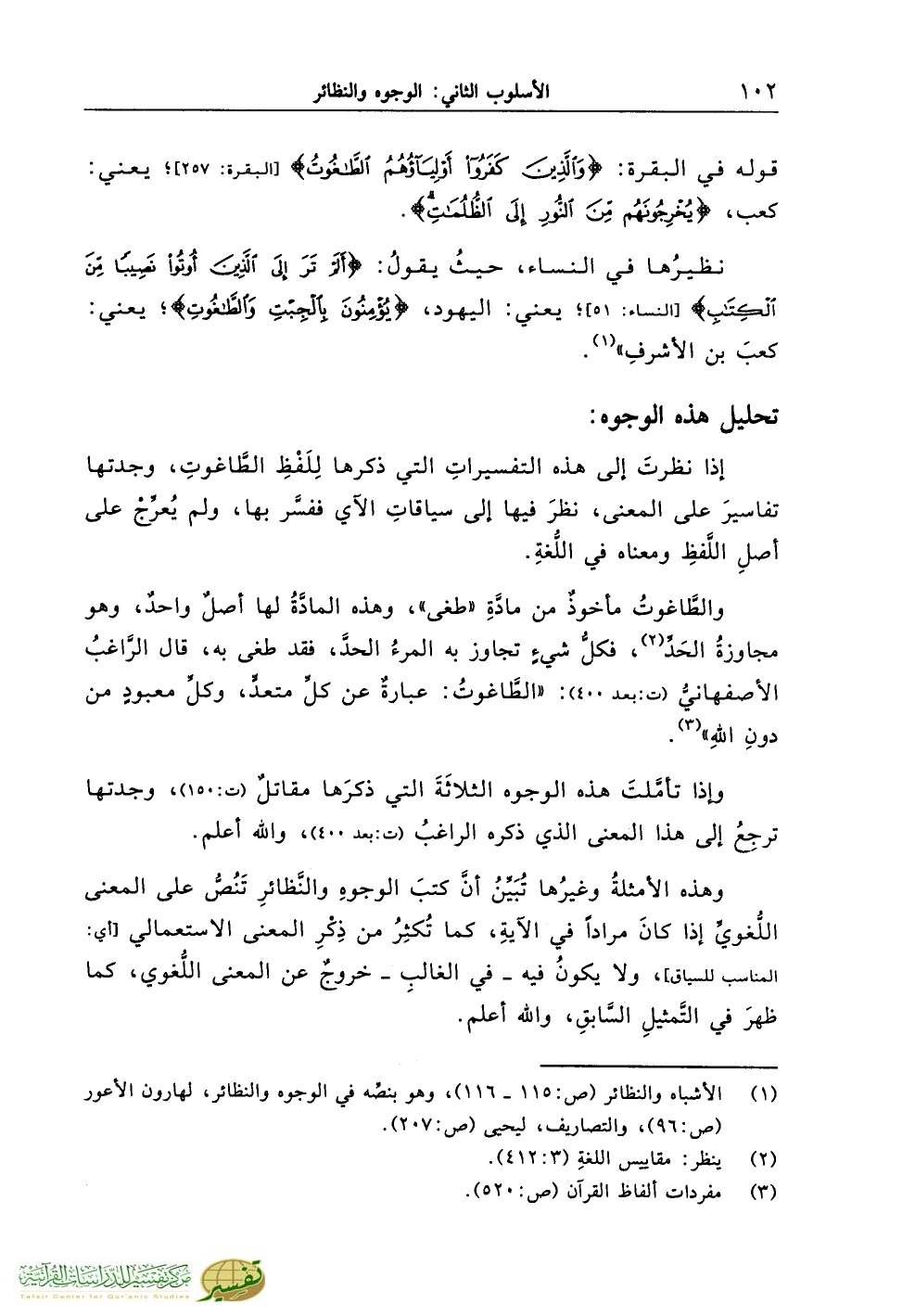 (¬1) الأشباه والنظائر (ص:115 - 116)، وهو بنصِّه في الوجوه والنظائر، لهارون الأعور (ص:96)، والتصاريف، ليحيى (ص:207).