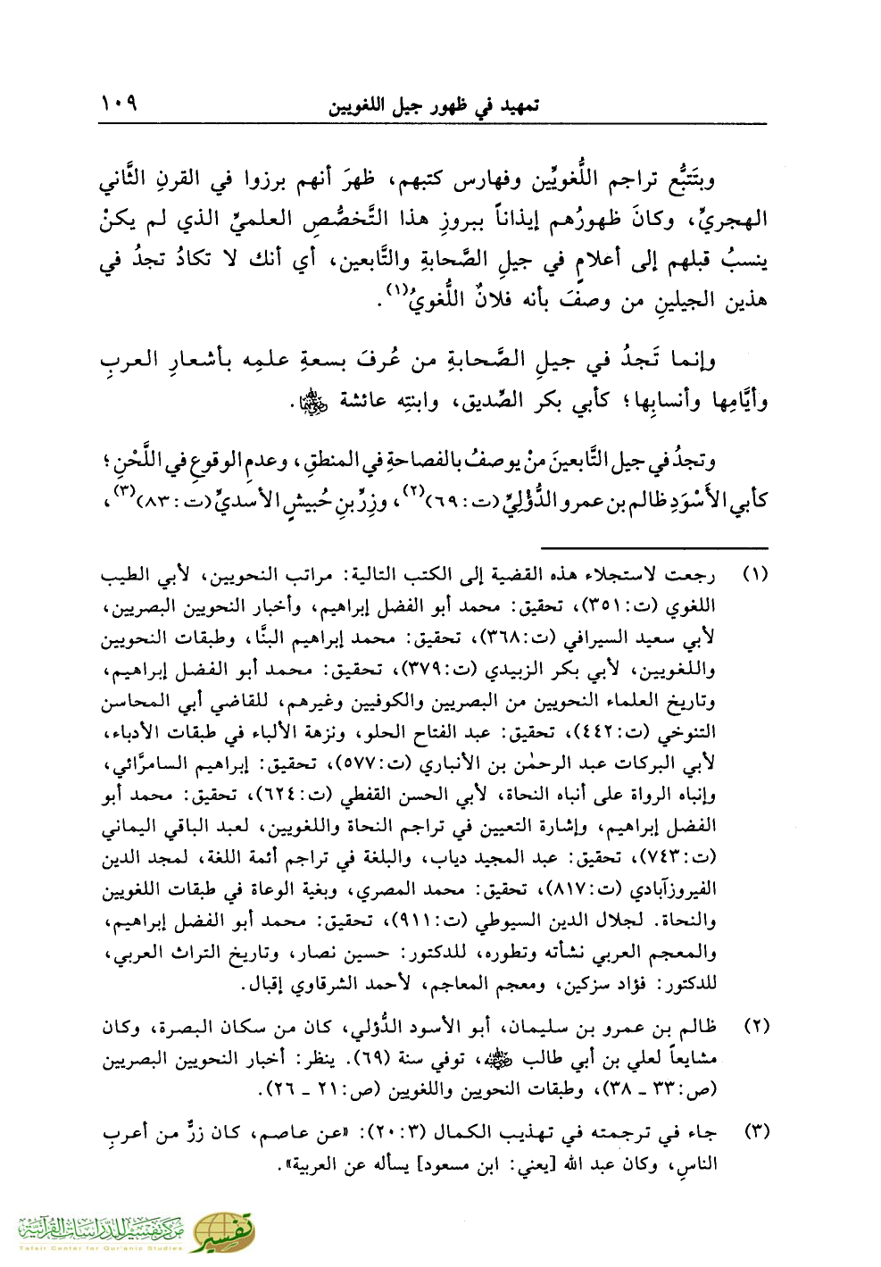 (¬1) رجعت لاستجلاء هذه القضية إلى الكتب التالية: مراتب النحويين، لأبي الطيب اللغوي (ت:351)، تحقيق: محمد أبو الفضل إبراهيم، وأخبار النحويين البصريين، لأبي سعيد السيرافي (ت:368)، تحقيق: محمد إبراهيم البنَّا، وطبقات النحويين واللغويين، لأبي بكر الزبيدي (ت:379)، تحقيق: محمد أبو الفضل إبراهيم، وتاريخ العلماء النحويين من البصريين والكوفيين وغيرهم، للقاضي أبي المحاسن التنوخي (ت:442)، تحقيق: عبد الفتاح الحلو، ونزهة الألباء في طبقات الأدباء، لأبي البركات عبد الرحمن بن الأنباري (ت:577)، تحقيق: إبراهيم السامرَّائي، وإنباه الرواة على أنباه النحاة، لأبي الحسن القفطي (ت:624)، تحقيق: محمد أبو الفضل إبراهيم، وإشارة التعيين في تراجم النحاة واللغويين، لعبد الباقي اليماني (ت:743)، تحقيق: عبد المجيد دياب، والبلغة في تراجم أئمة اللغة، لمجد الدين الفيروزآبادي (ت:817)، تحقيق: محمد المصري، وبغية الوعاة في طبقات اللغويين والنحاة. لجلال الدين السيوطي (ت:911)، تحقيق: محمد أبو الفضل إبراهيم، والمعجم العربي نشأته وتطوره، للدكتور: حسين نصار، وتاريخ التراث العربي، للدكتور: فؤاد سزكين، ومعجم المعاجم، لأحمد الشرقاوي إقبال.