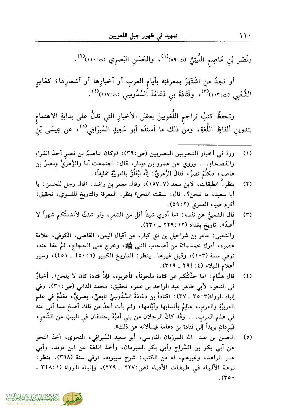 أو تجدُ منِ اشْتَهَرَ بمعرفتِه بأيامِ العربِ أو أخبارِها أو أشعارِها؛ كعَامِرٍ الشَّعْبِي (ت:103) (¬3)، وقَتَادَةَ بنِ دَعَامَةَ السَّدُوسِي (ت:117) (¬4).