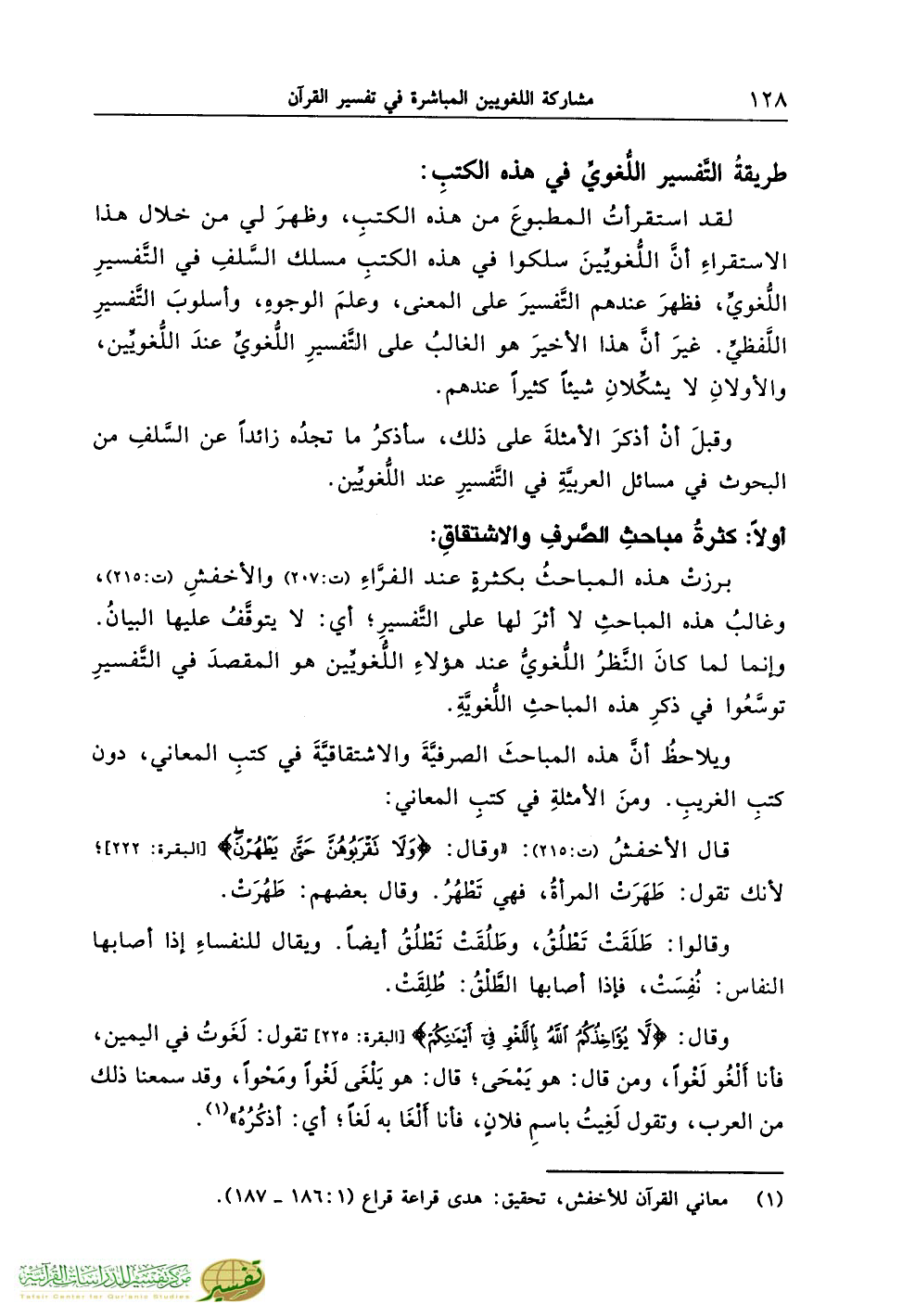 برزتْ هذه المباحثُ بكثرةٍ عند الفرَّاءِ (ت:207) والأخفشِ (ت:215)، وغالبُ هذه المباحثِ لا أثرَ لها على التَّفسيرِ؛ أي: لا يتوقَّفُ عليها البيانُ. وإنما لما كانَ النَّظرُ اللُّغويُّ عند هؤلاءِ اللُّغويِّين هو المقصدَ في التَّفسيرِ توسَّعُوا في ذكرِ هذه المباحثِ اللُّغويَّةِ.