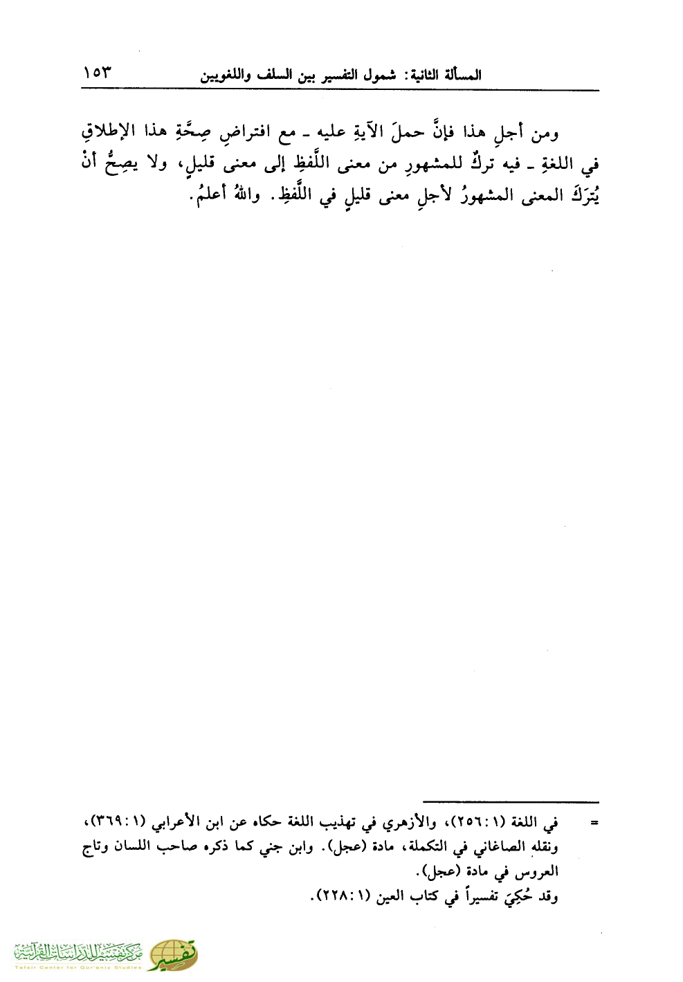 وقد حُكِيَ تفسيراً في كتاب العين (1:228).