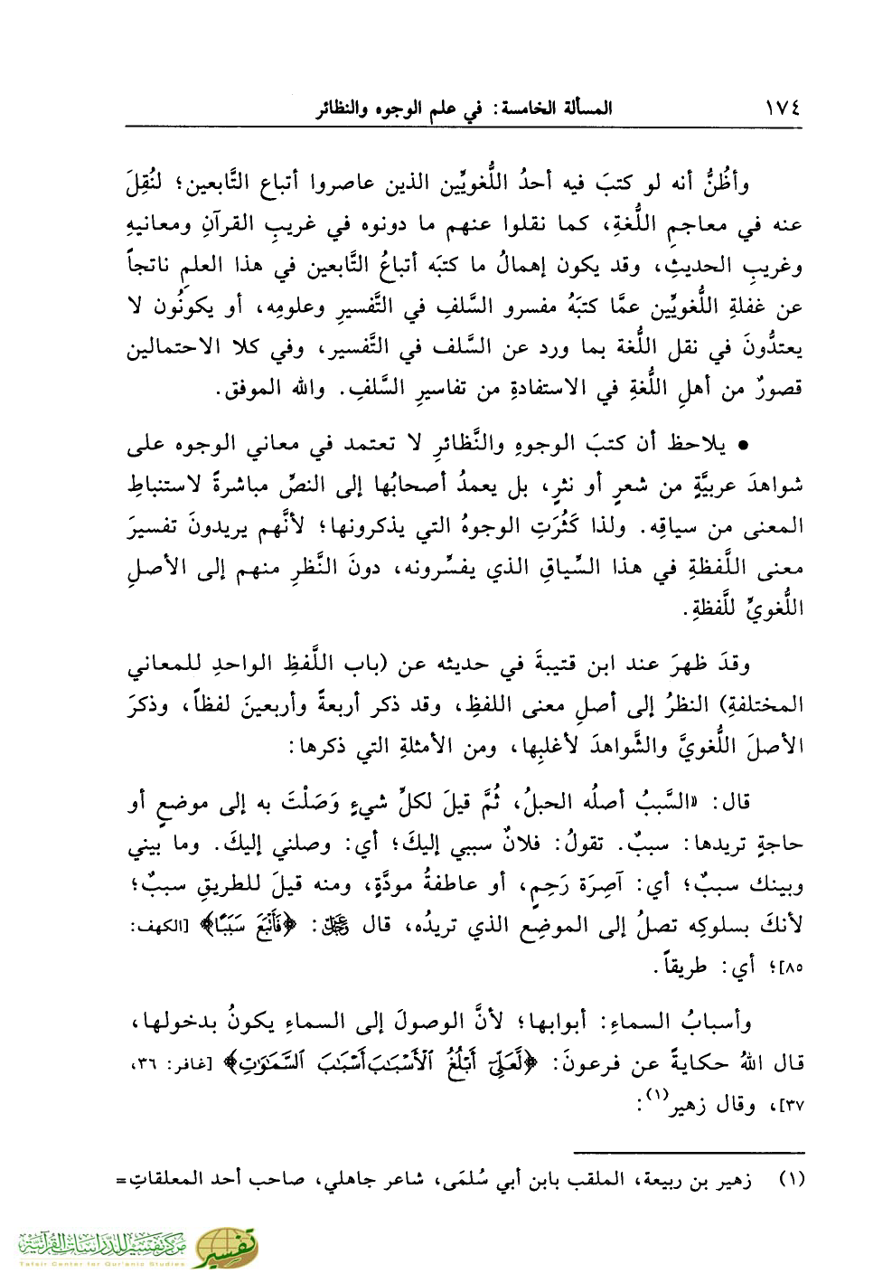 * يلاحظ أن كتبَ الوجوهِ والنَّظائرِ لا تعتمد في معاني الوجوه على شواهدَ عربيَّةٍ من شعرٍ أو نثرٍ، بل يعمدُ أصحابُها إلى النصِّ مباشرةً لاستنباطِ المعنى من سياقِه. ولذا كَثُرَتِ الوجوهُ التي يذكرونها؛ لأنَّهم يريدونَ تفسيرَ معنى اللَّفظةِ في هذا السِّياقِ الذي يفسِّرونه، دونَ النَّظرِ منهم إلى الأصلِ اللُّغويِّ للَّفظةِ.
