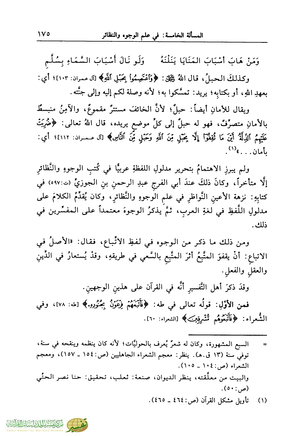 ولم يبرزِ الاهتمامُ بتحرير مدلولِ اللفظةِ عربيًّا في كُتبِ الوجوهِ والنَّظائرِ إلاَّ متأخراً، وكانَ ذلكَ عندَ أبي الفرجِ عبدِ الرحمنِ بنِ الجوزيِّ (ت:597) في كتابِهِ: نزهة الأعينِ النَّواظرِ في علمِ الوجوهِ والنَّظائرِ، وكان يُقدِّمُ الكلامَ على مدلولِ اللَّفظِ في لغةِ العربِ، ثمَّ يذكرُ الوجوهَ معتمداً على المفسِّرين في ذلك.