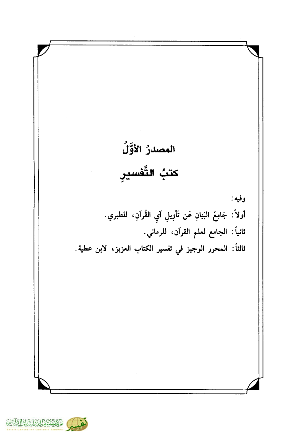 أولاً: جَامِعُ البَيَانِ عَن تَأوِيلِ آيِ القُرآنِ، للطبري.