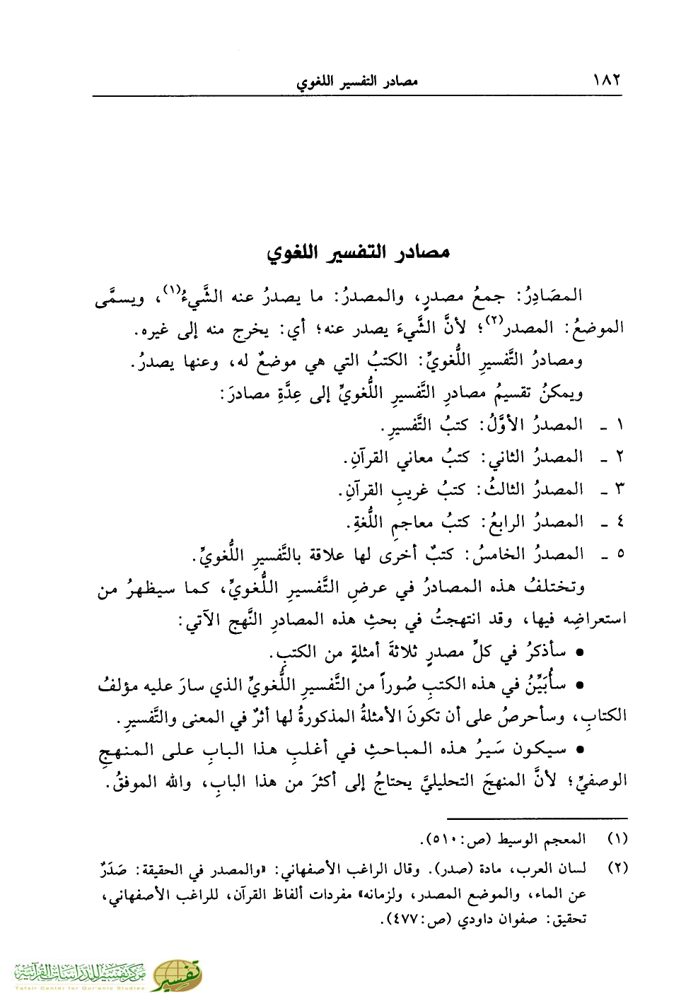 ومصادرُ التَّفسيرِ اللُّغويِّ: الكتبُ التي هي موضعٌ له، وعنها يصدرُ.