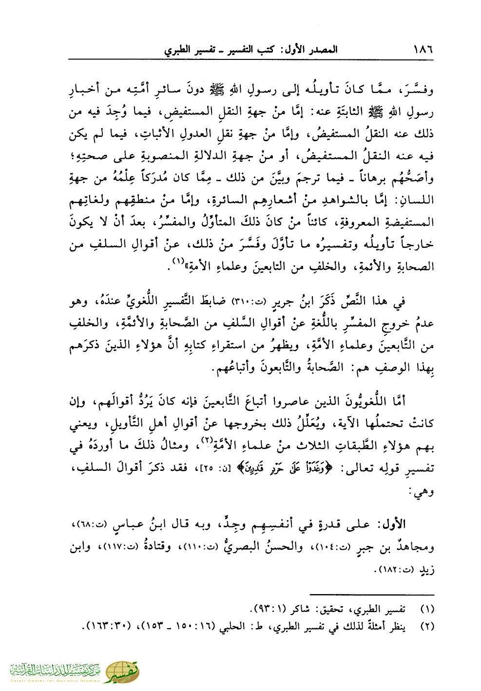 (¬2) ينظر أمثلةً لذلك في تفسير الطبري، ط: الحلبي (16:150 - 153)، (30:163).