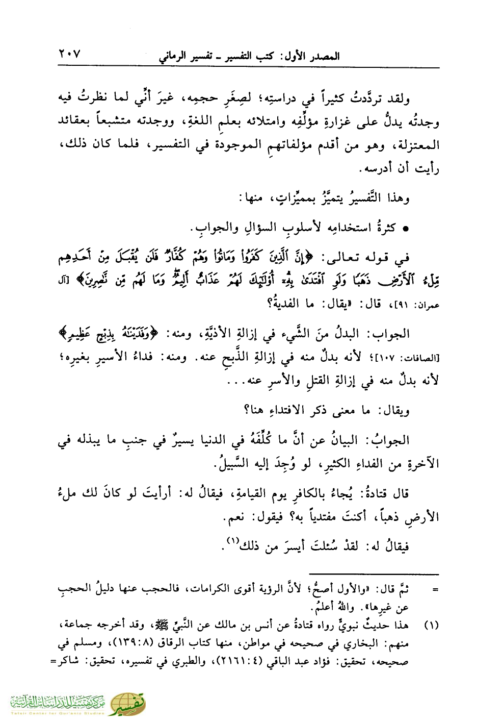 ولقد تردَّدتُ كثيراً في دراستِه؛ لصِغَرِ حجمِه، غيرَ أنِّي لما نظرتُ فيه وجدتُه يدلُّ على غزارةِ مؤلِّفِه وامتلائه بعلمِ اللغةِ، ووجدته متشبعاً بعقائد المعتزلة، وهو من أقدم مؤلفاتهمِ الموجودة في التفسير، فلما كان ذلك، رأيت أن أدرسه.