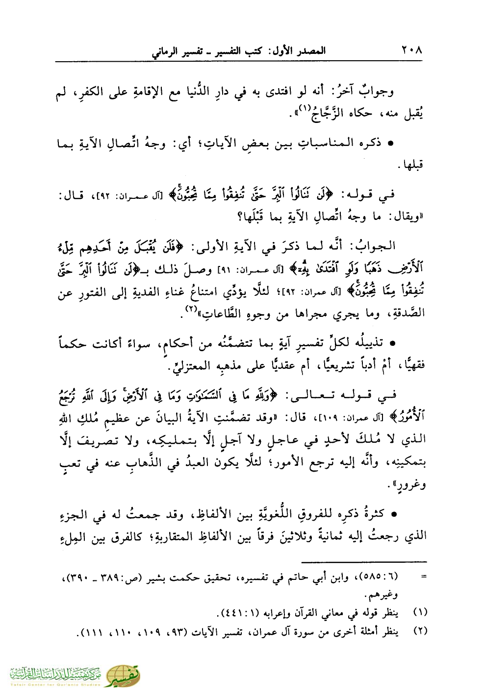 (¬2) ينظر أمثلة أخرى من سورة آل عمران، تفسير الآيات (93، 109، 110، 111).