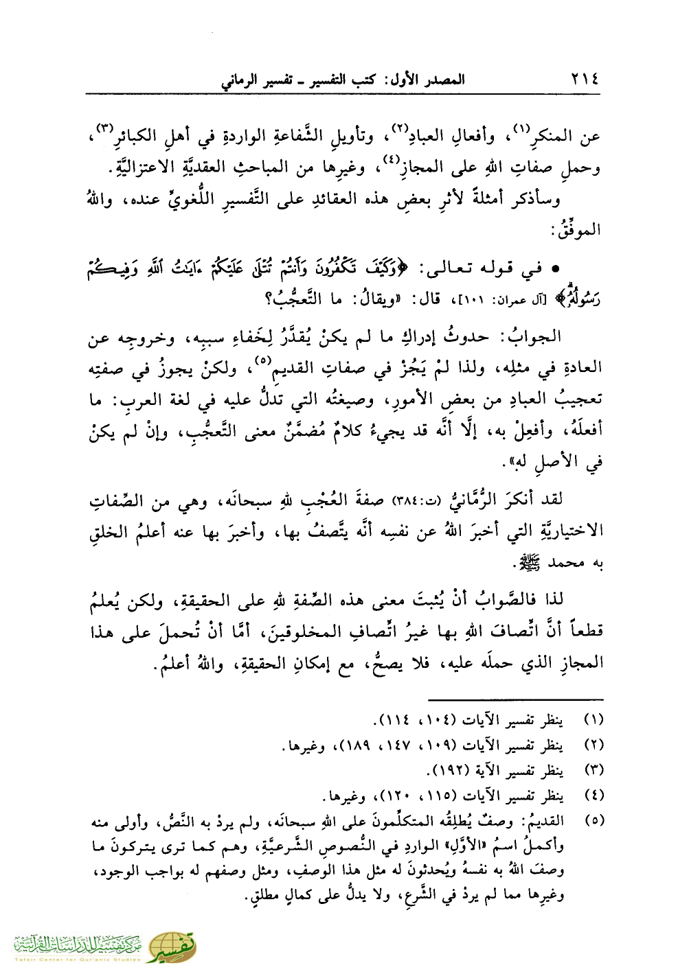 (¬4) ينظر تفسير الآيات (115، 120)، وغيرها.