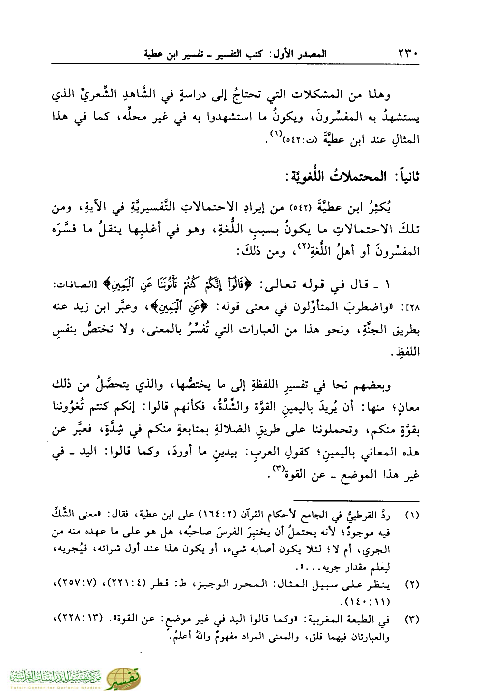 (¬2) ينظر على سبيل المثال: المحرر الوجيز، ط: قطر (4:221)، (7:257)، (11:140).