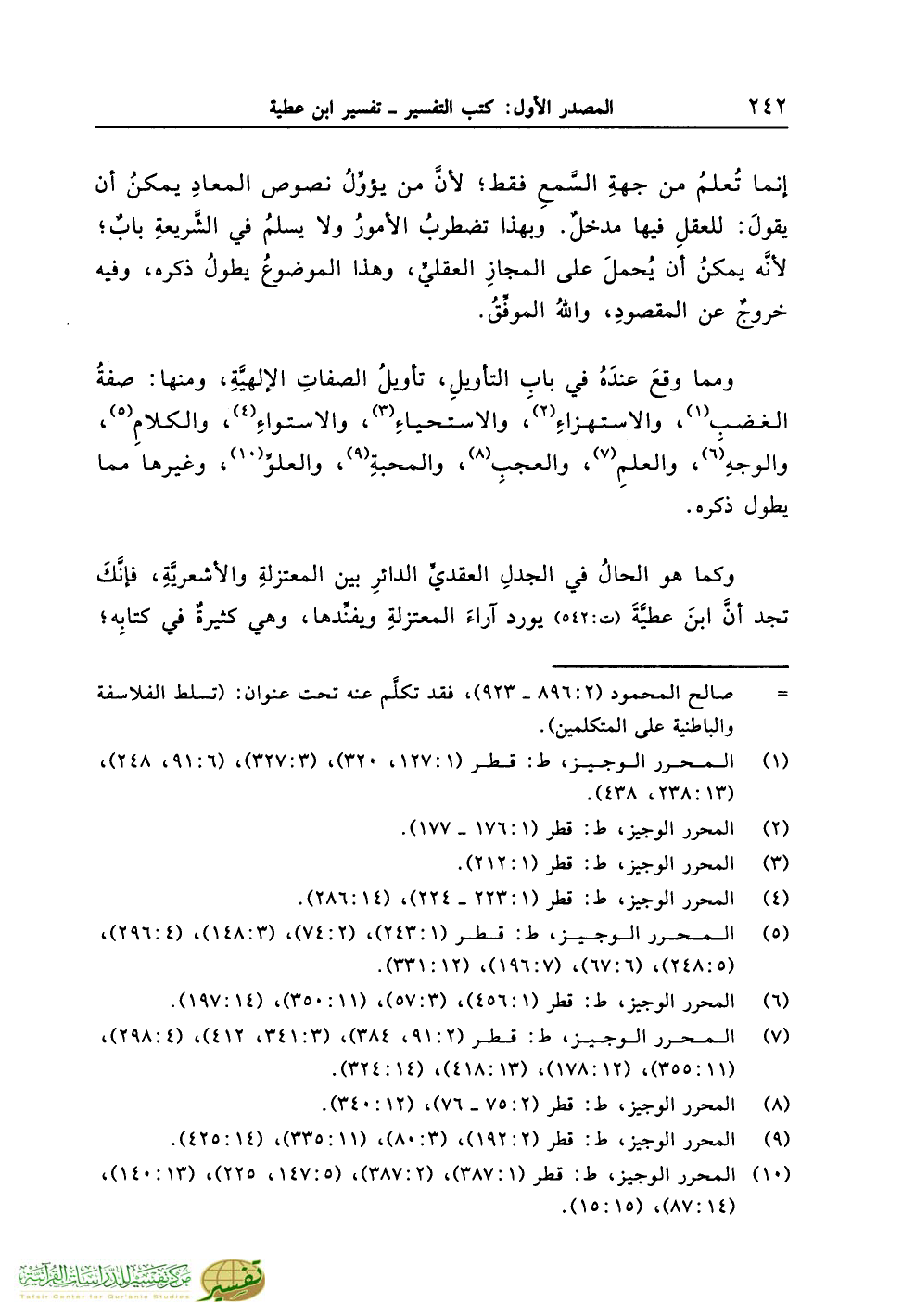 (¬10) المحرر الوجيز، ط: قطر (1:387)، (2:387)، (5:147، 225)، (13:140)، (14:87)، (15:15).