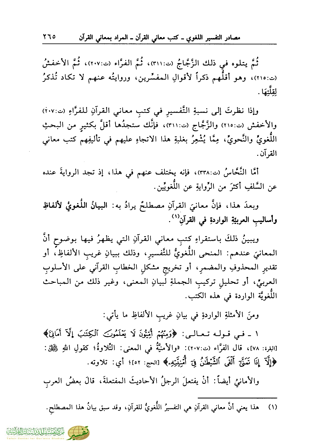 (¬1) هذا يعني أنَّ معاني القرآنِ هي التفسيرُ اللُّغويُّ للقرآنِ، وقد سبق بيانُ هذا المصطلحِ.