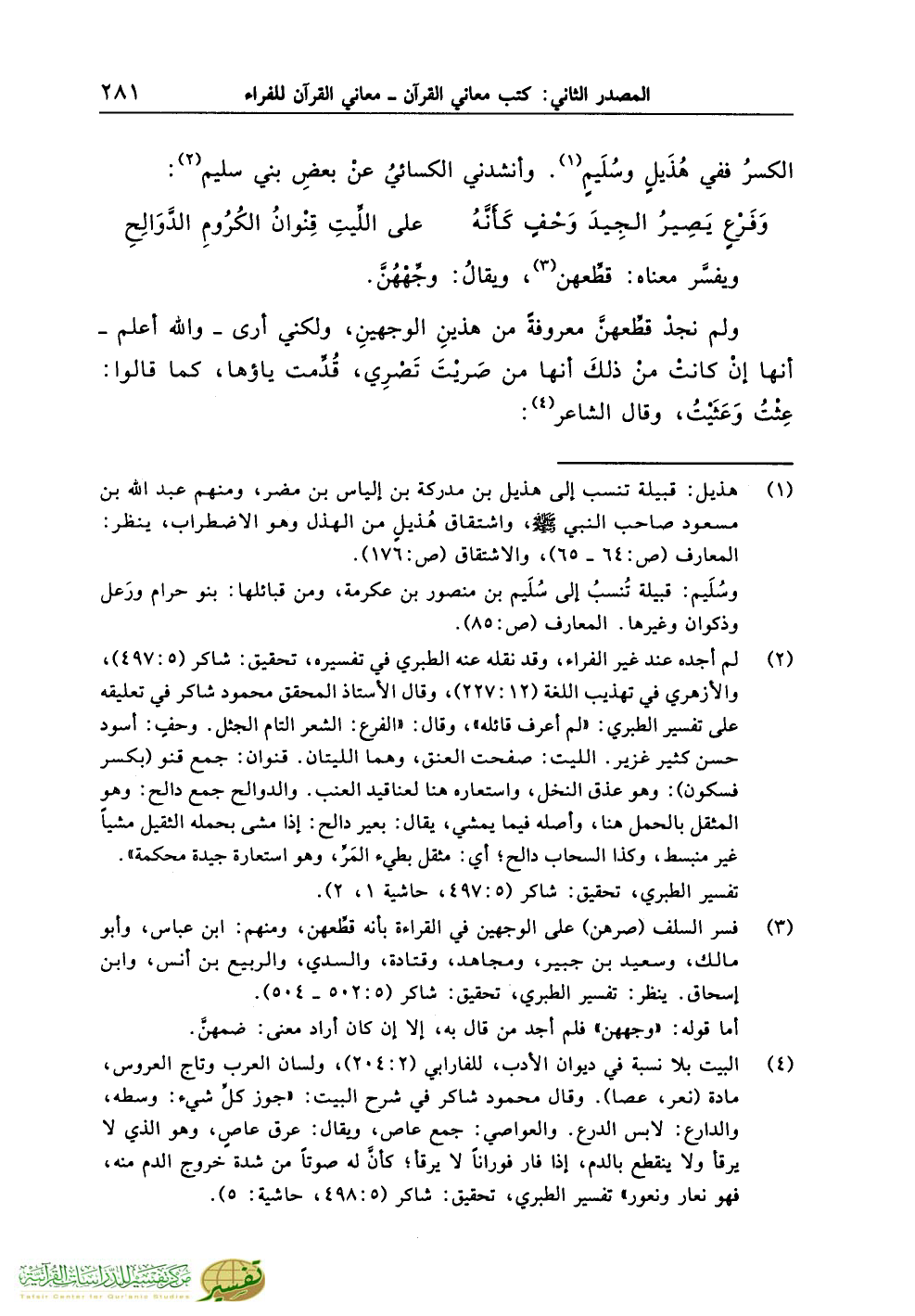 تفسير الطبري، تحقيق: شاكر (5:497، حاشية 1، 2).