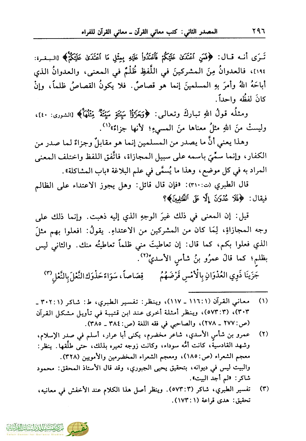 (¬3) تفسير الطبري، شاكر (3:573). وينظر أصل هذا الكلام عند الأخفش في معانيه، تحقيق: هدى قراعة (1:173).